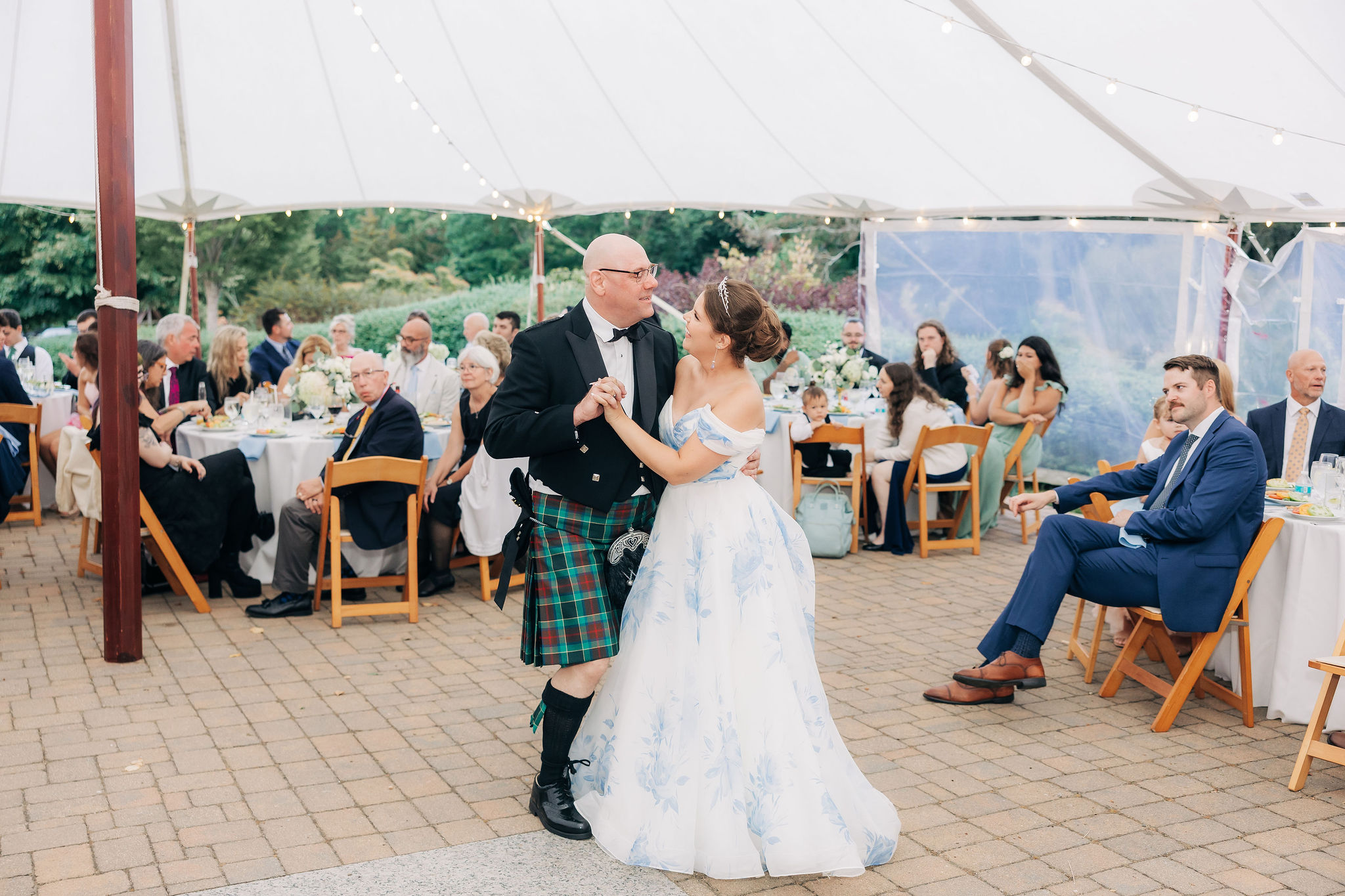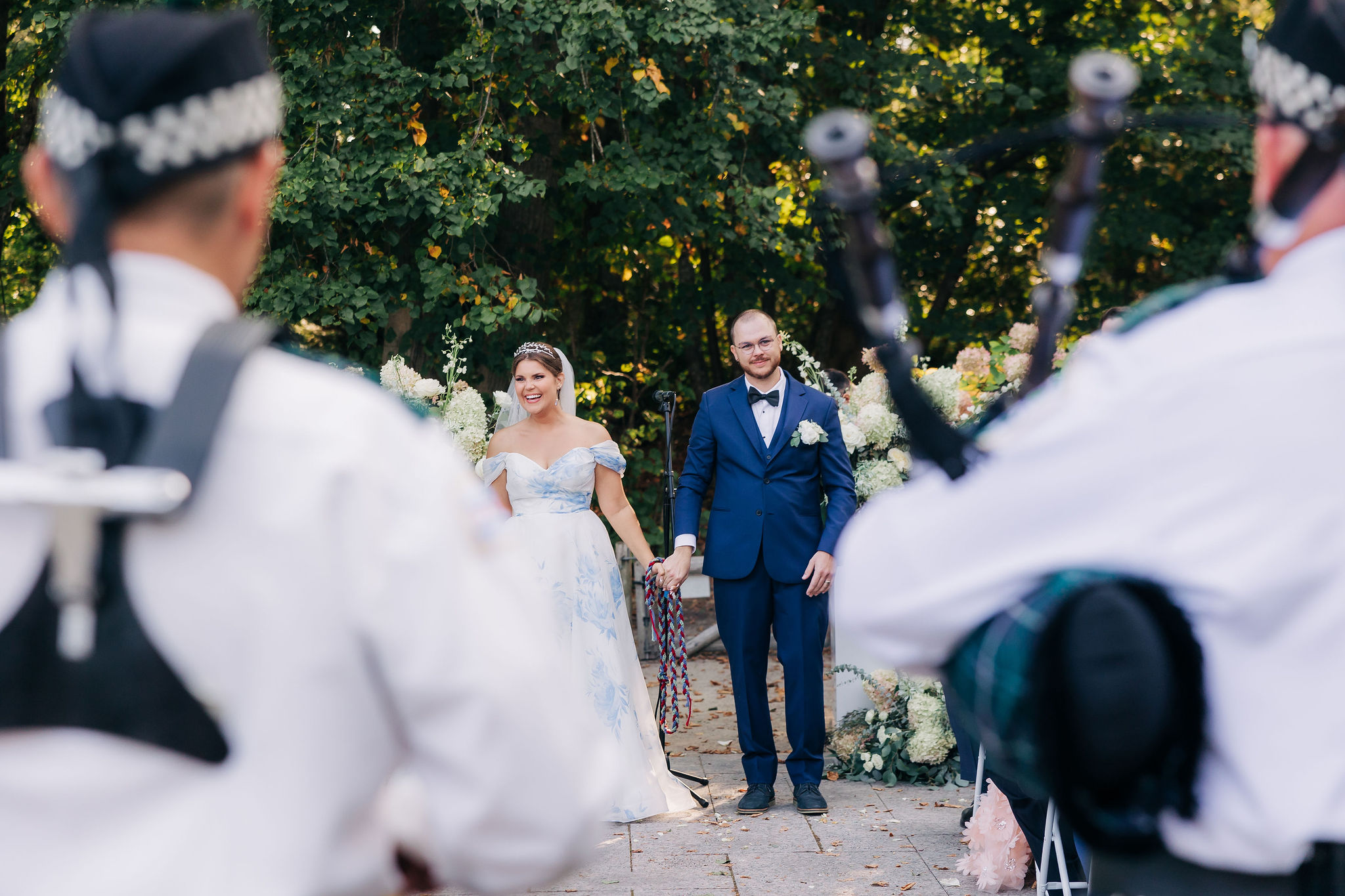 Just like Brigitte’s gown, her and Jared’s day was refined with a twist. They married at Highfield Hall and Gardens, Brigitte’s dad’s bagpipe band played, they included a knot-tying ceremony, and Brigitte’s best friend, Nick, officiated.