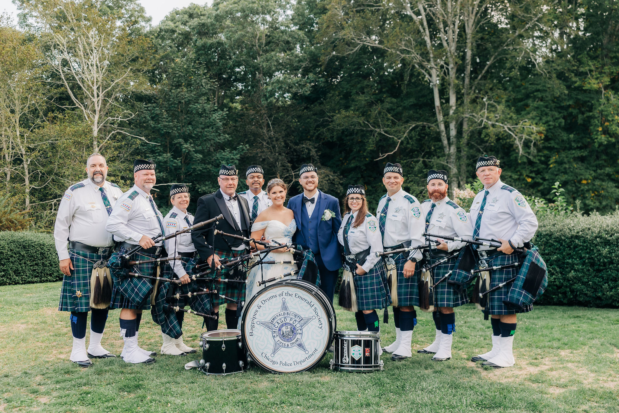 wedding dress: Lea-Ann Belter Blythe via Your Dream Bridal | photography: Ella Farrell Photography | florals: Michelle Elizabeth Floral Design | styling: Julie Centofanti Styling | alterations: Fit for Bride | entertainment: DJ Dave Hodges & Matthew Hutchinson & Emerald Society of Pipes & Drums Chicago | venue: Highfield Hall & Gardens | ice cream truck: Sea Scoops | catering: The Casual Gourmet
