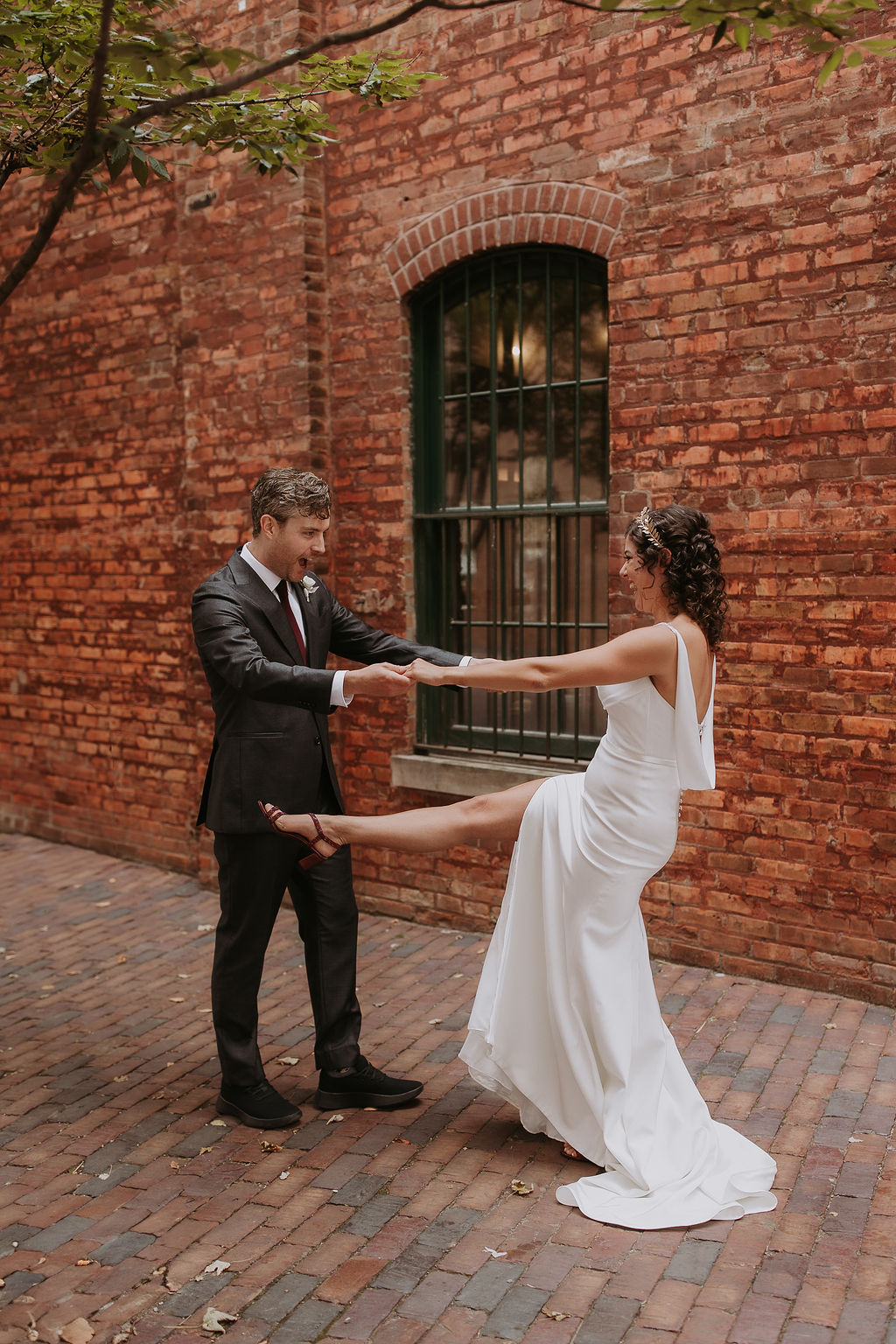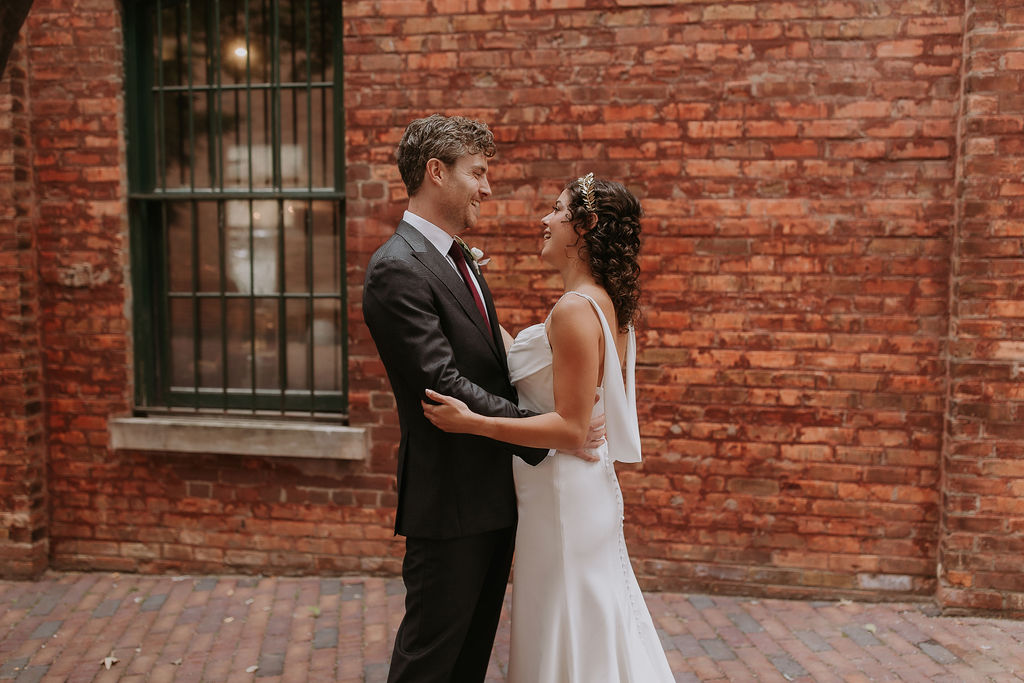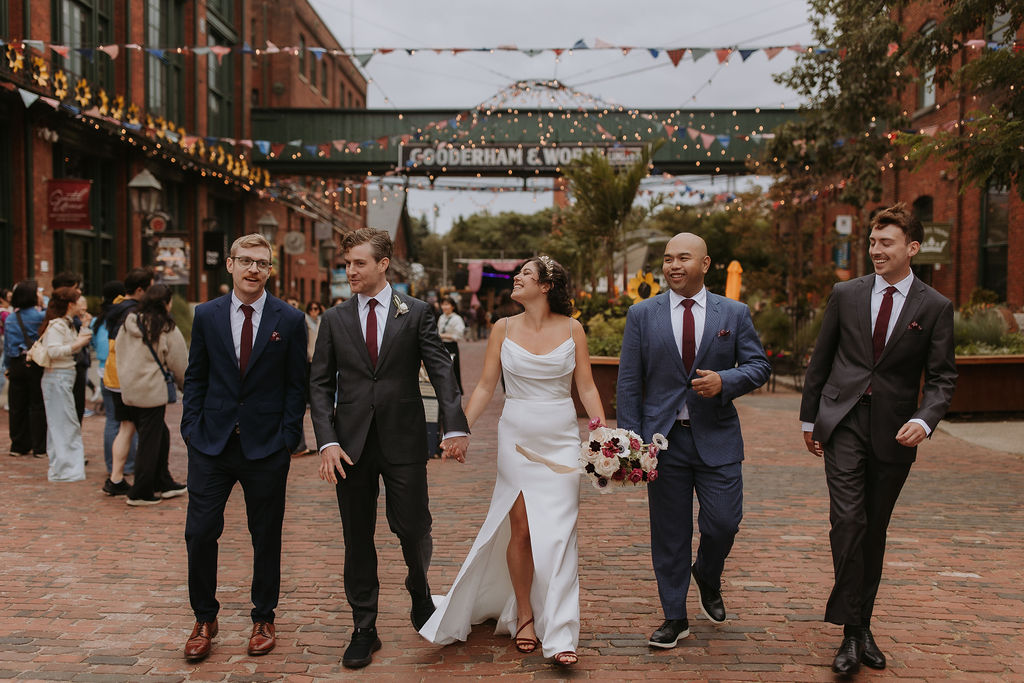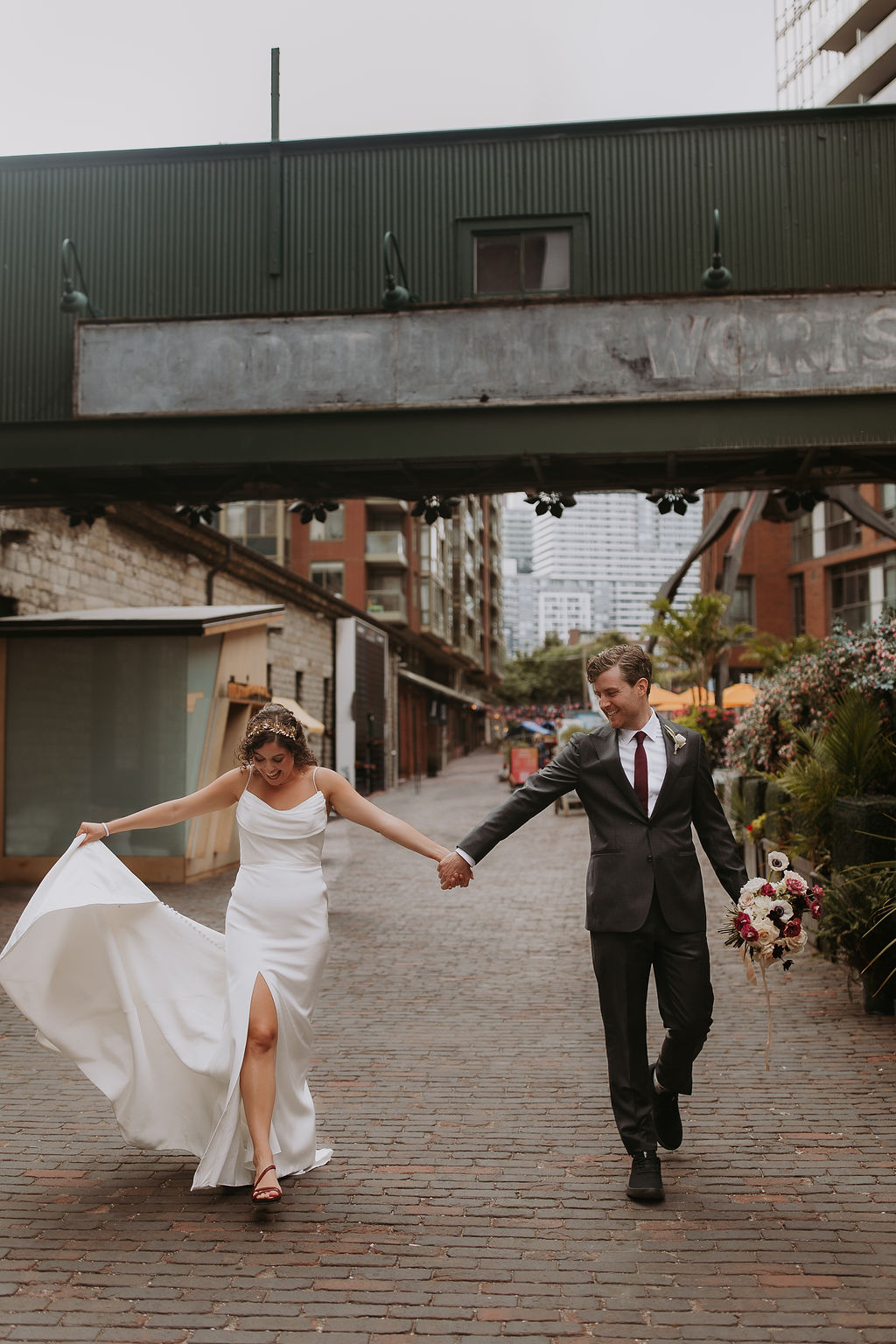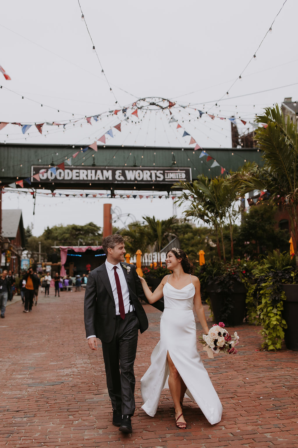 Toronto’s Distillery District may have loads of ambiance. The gorgeous brick. The backdrops. The lighting. It’s all fabulous. But all that sort of takes a charming back seat when joy and love enter the scene. Case in point, Cristina and Steve’s wedding day.