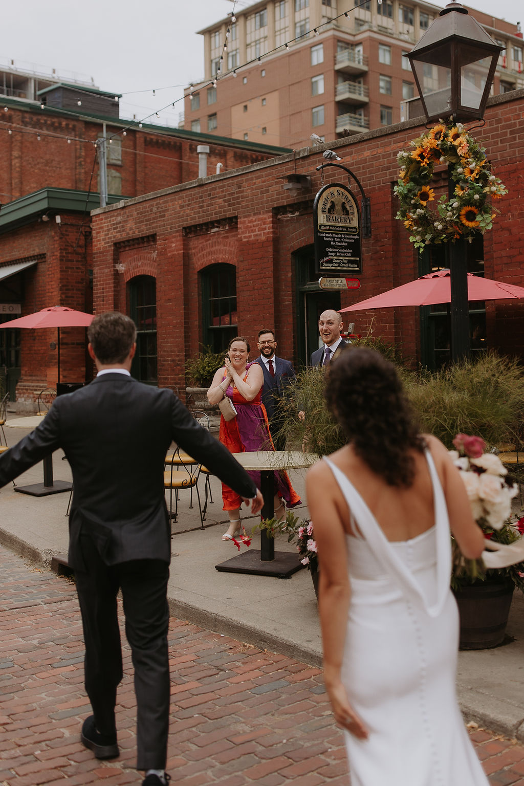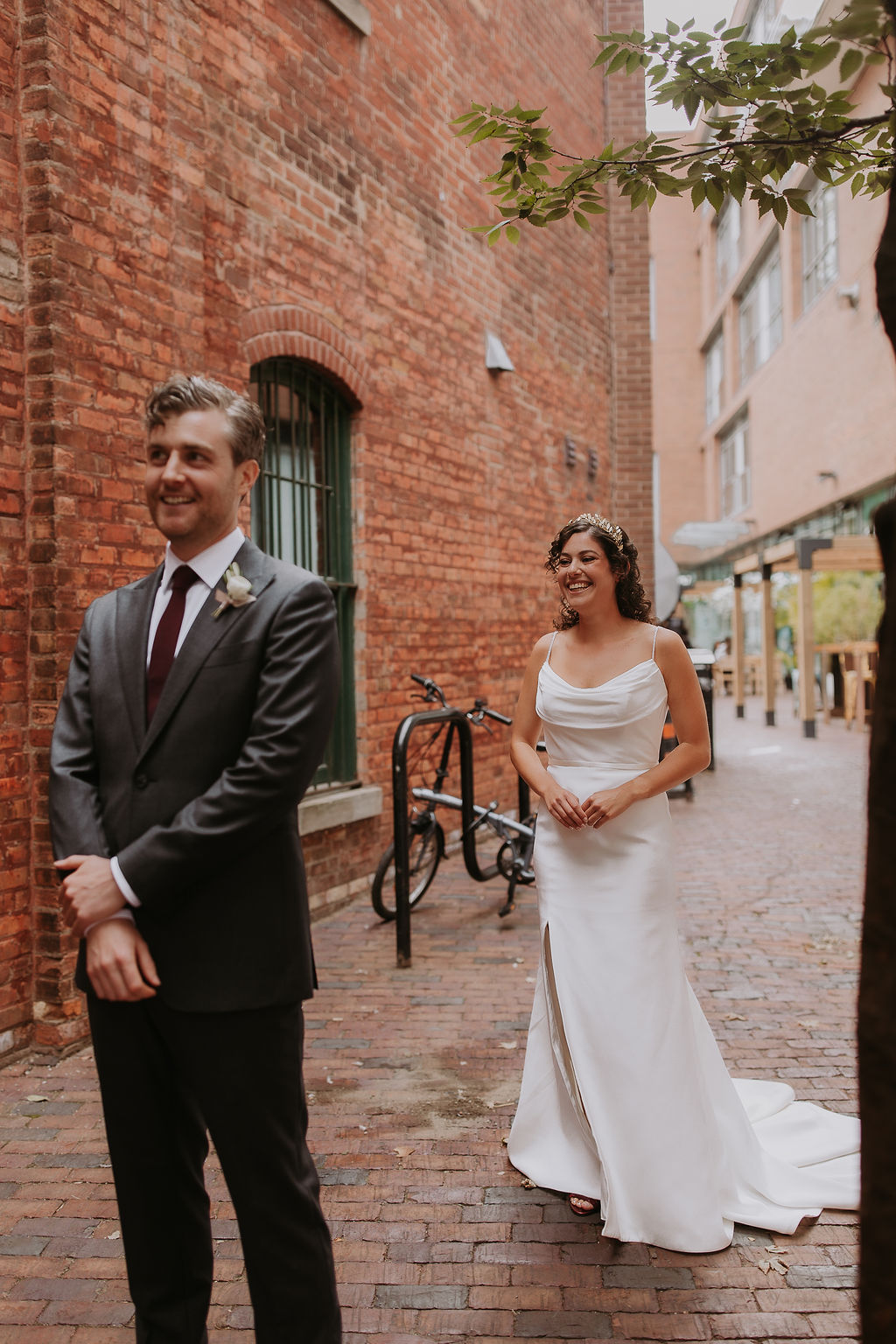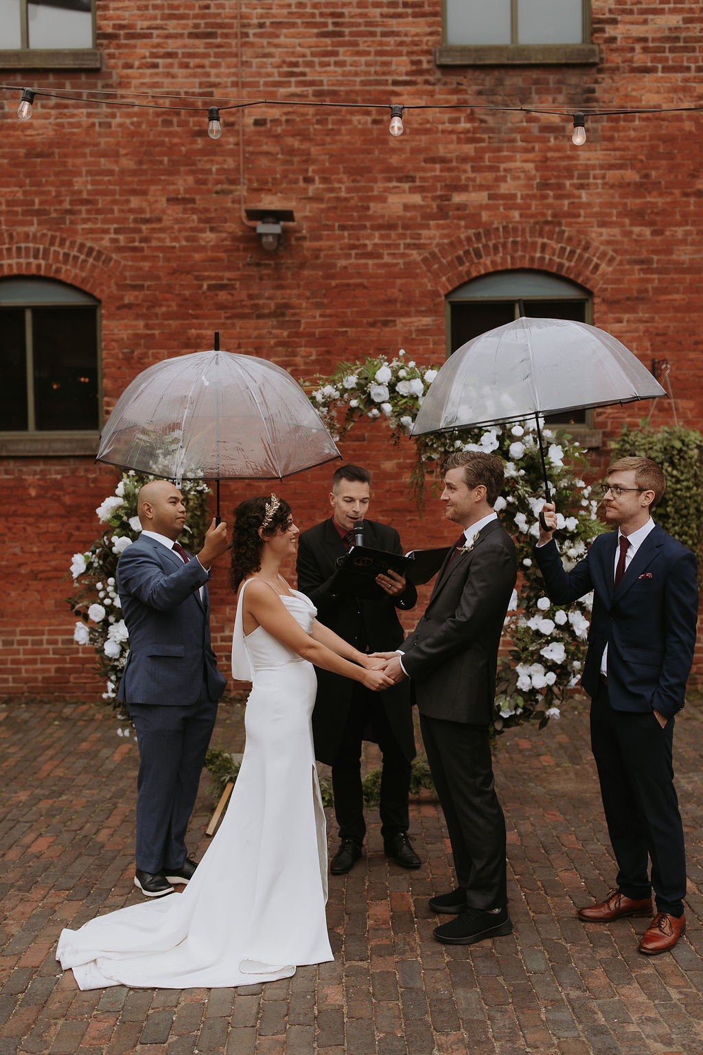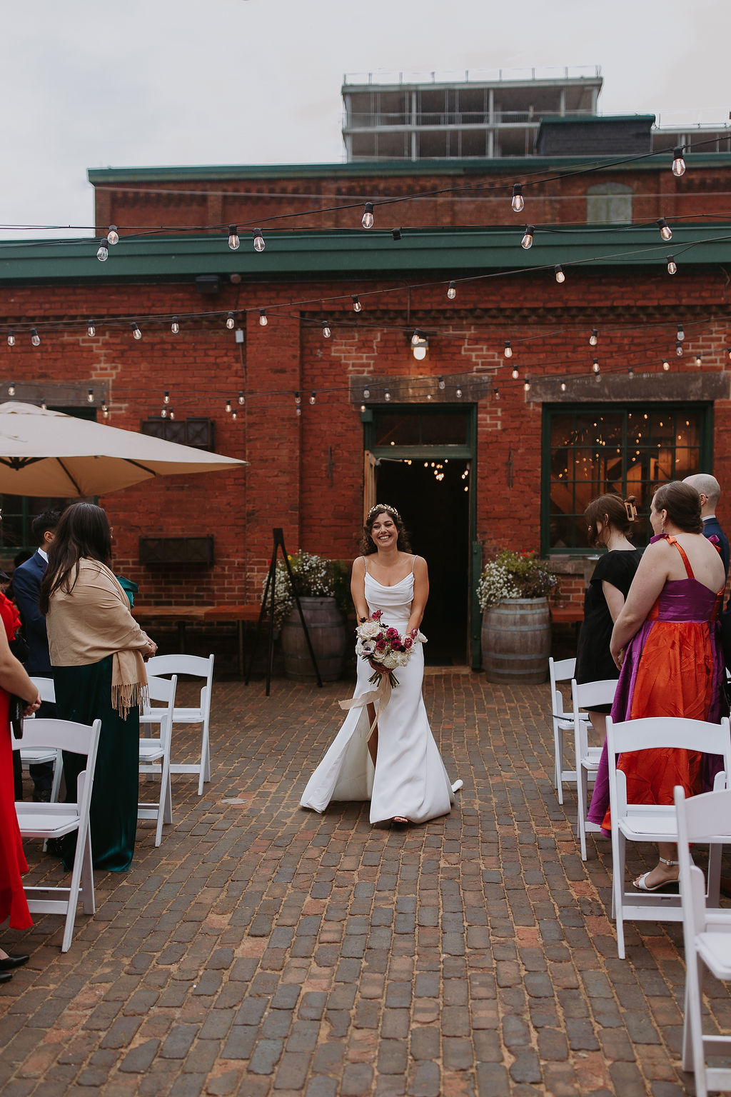 Toronto’s Distillery District may have loads of ambiance. The gorgeous brick. The backdrops. The lighting. It’s all fabulous. But all that sort of takes a charming back seat when joy and love enter the scene. Case in point, Cristina and Steve’s wedding day.