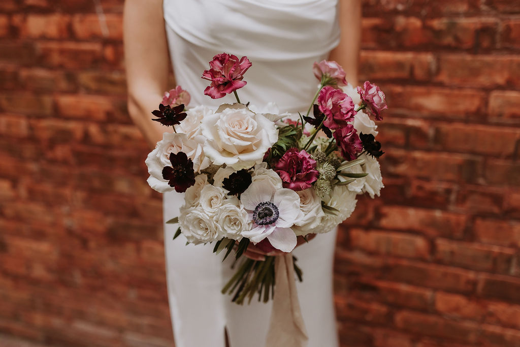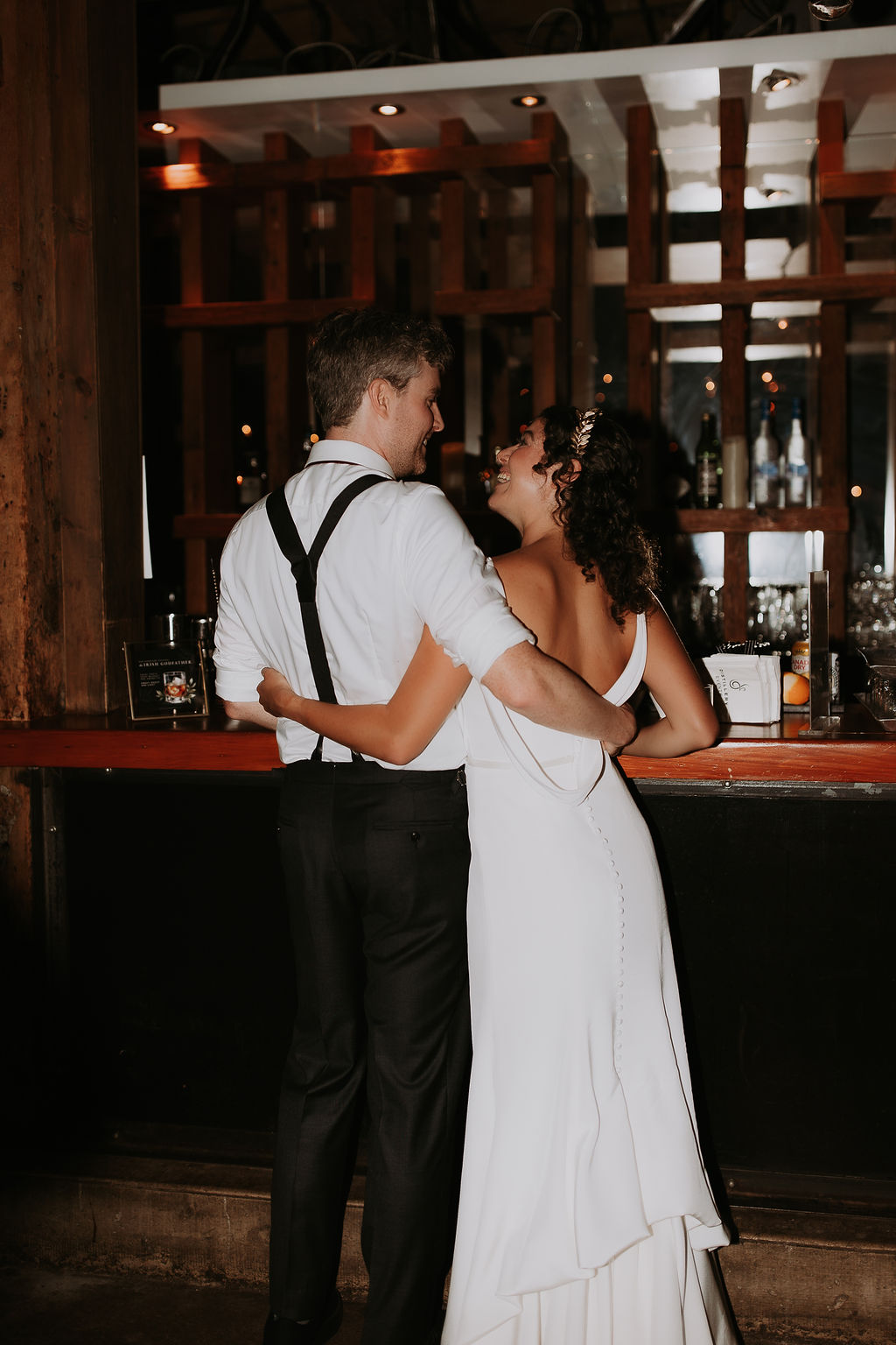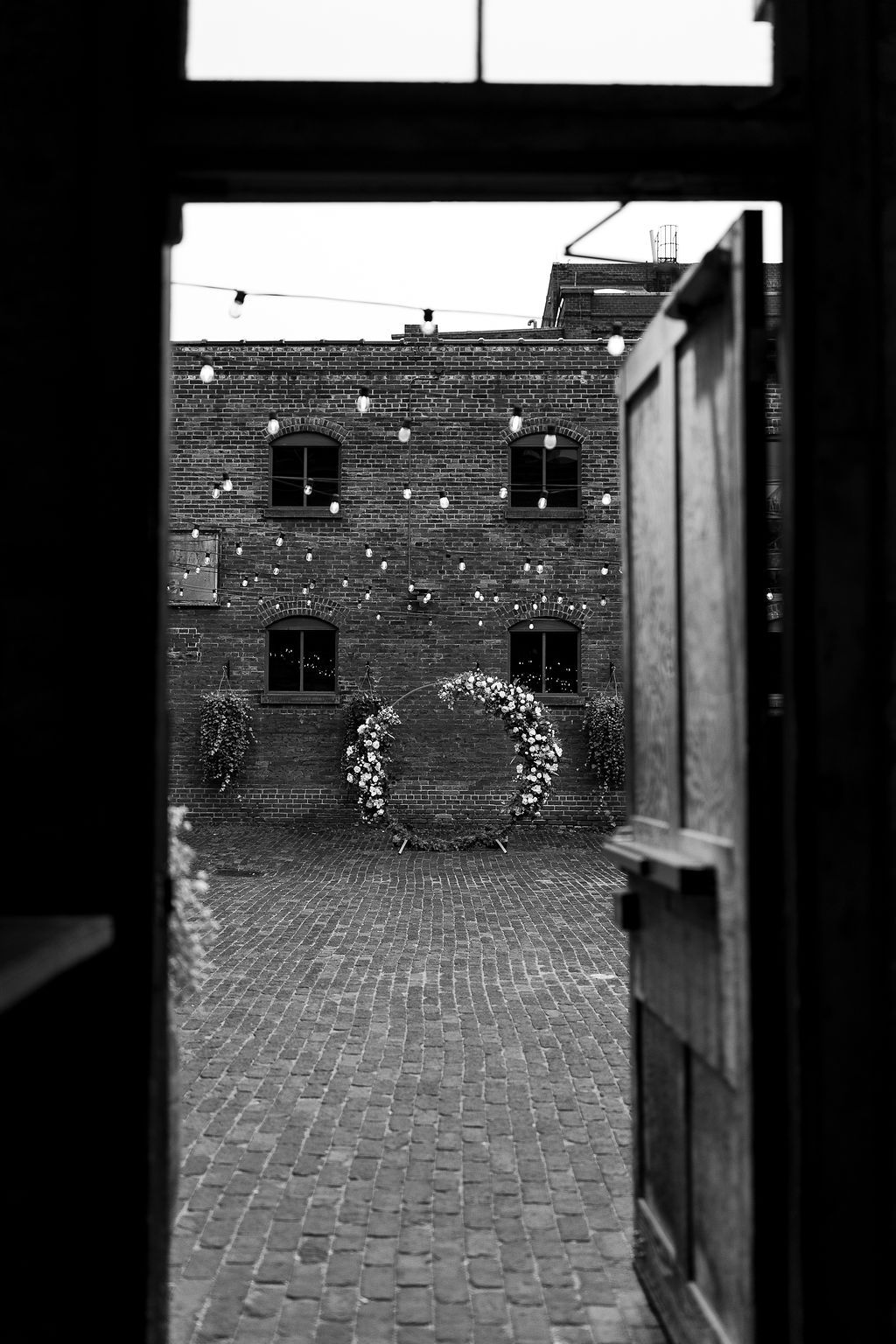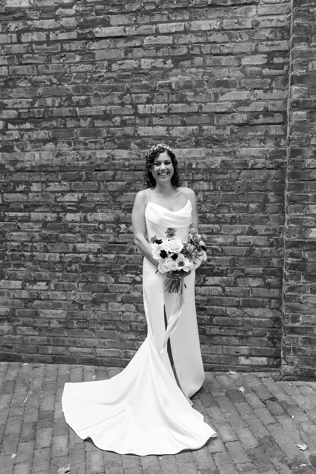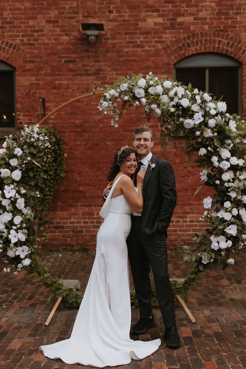 wedding dress: customized gown via the Lea-Ann Belter flagship Toronto boutique | photographer: Let Live Imagery | event planning + coordination: Events Your Way | venue: Archeo in the Distillery District | officiant: The Marry Men | florals: Quince Flowers | hair + makeup: Eryn Shannon Makeup + Hair | Arch rental: Pristine Design & Decor | – DJ: Scottify Productions | String Ensemble: Duo D’amore