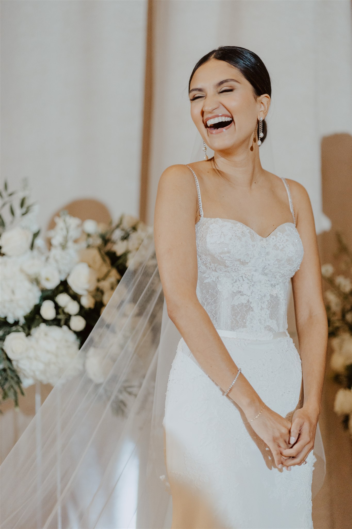 With plans for a wedding at the Ritz-Carlton Toronto in the works, Alexa set out in search of a one-of-a-kind classic wedding dress. At our flagship bridal boutique, she met her match with help from our owner Vanessa! “I was so excited to “blend” two different Lea-Ann gowns and put my own special touches on it (Swarovski crystals embellished into the dainty straps, elegant lace from France along the bodice, etc.).” When her dress was ready, “I couldn’t stop smiling when I put on my gown and felt so comfortable & fully myself! So grateful to Vanessa for her patience and kindness as we designed my perfect gown.”