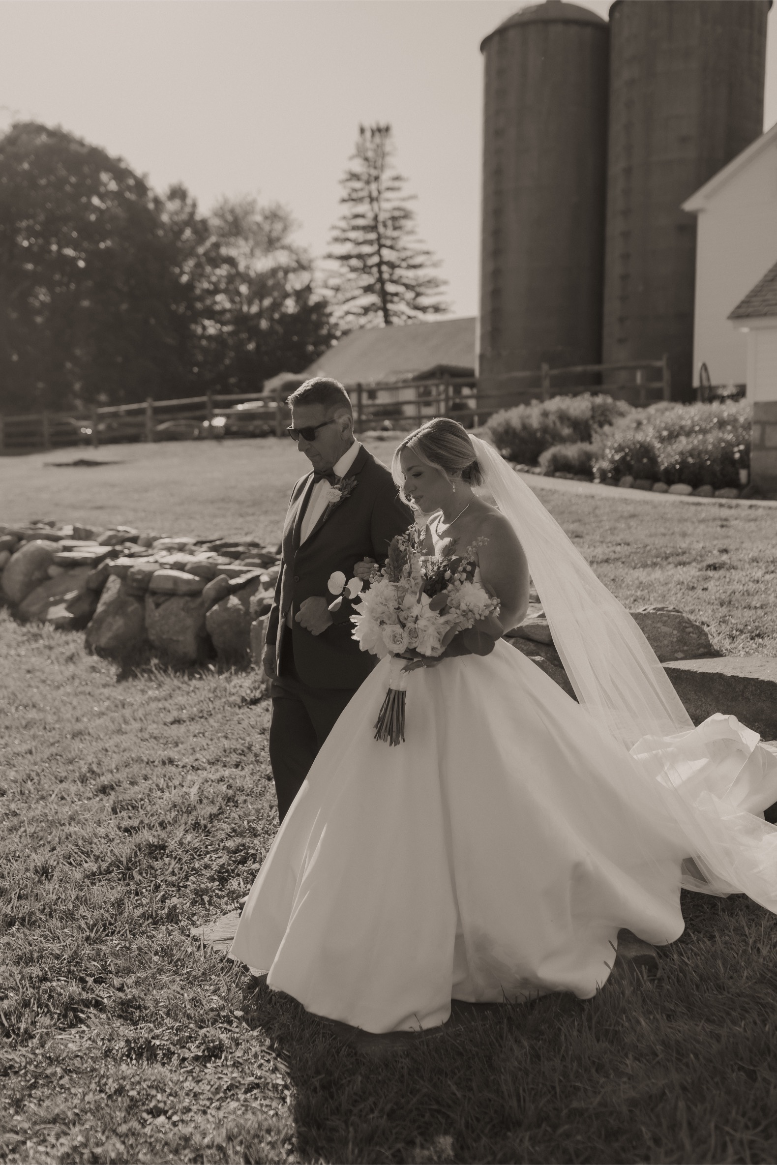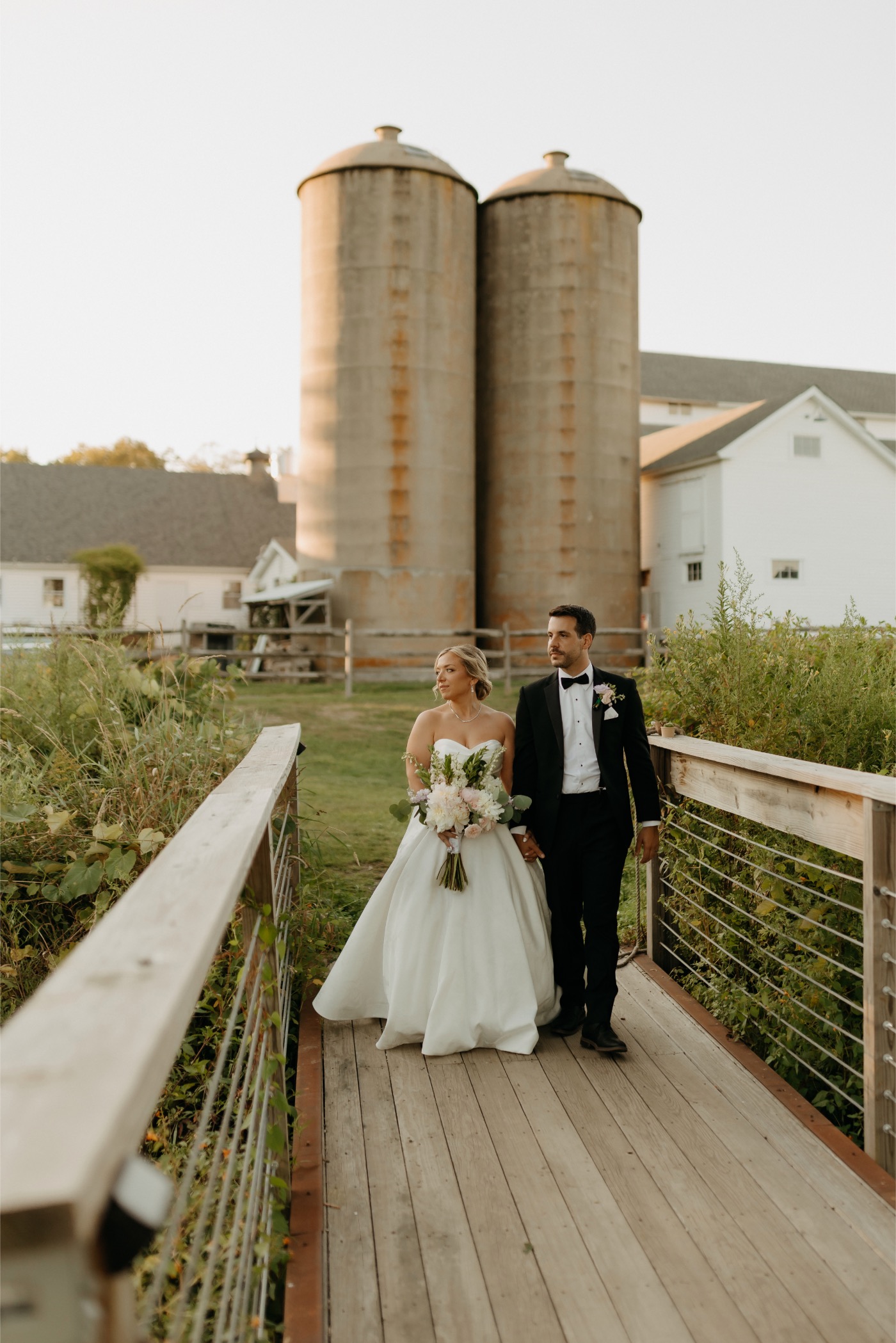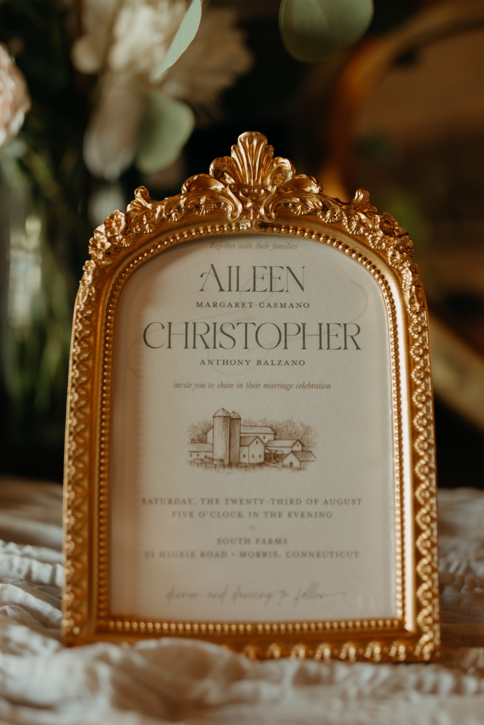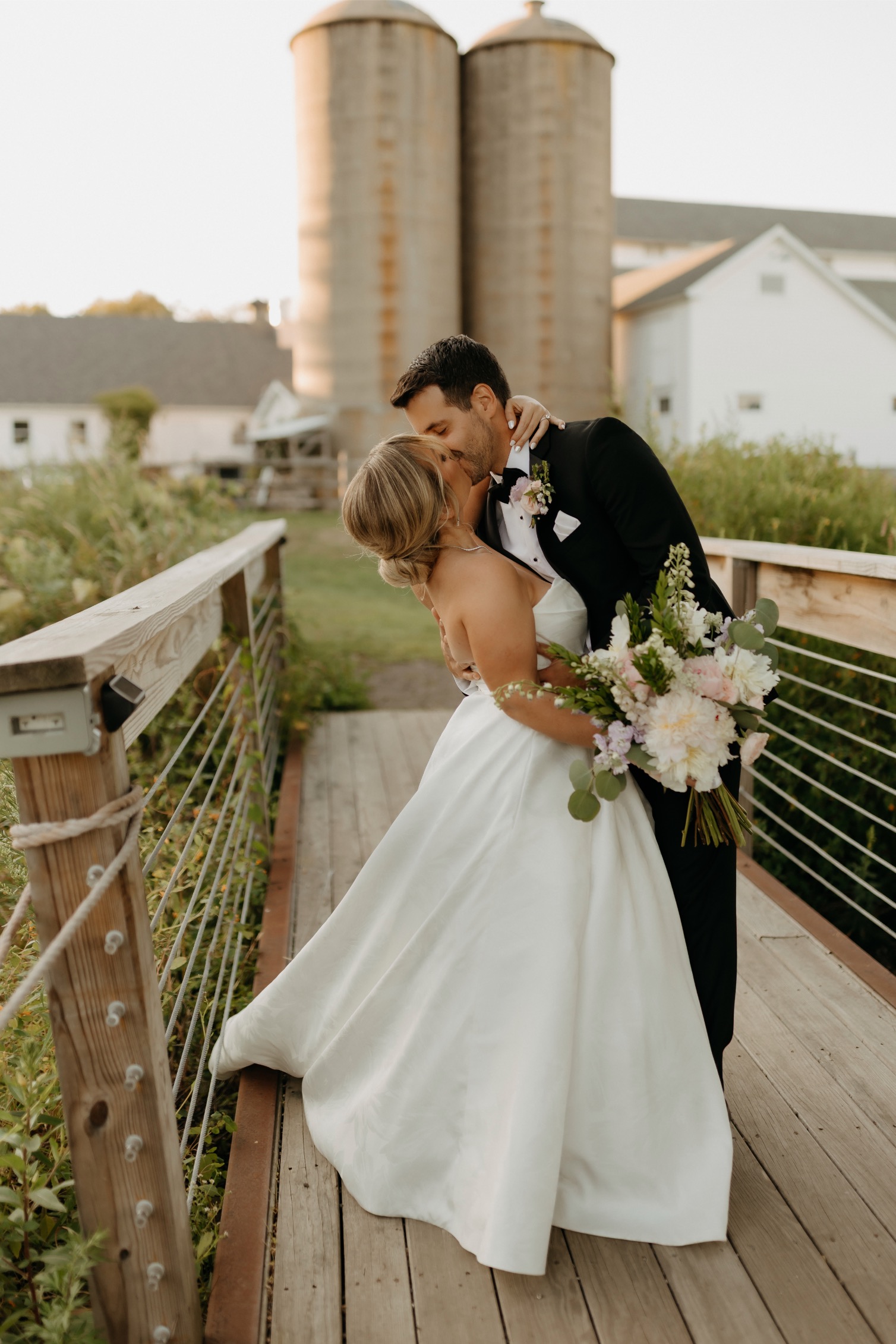 We were married at South Farms in Morris, CT, a former cattle and dairy farm that has been transformed into a stunning venue. The barn’s history is honored through its preserved structure and signs, while the interior has been elevated for elegant celebrations. Surrounded by Litchfield County’s rolling hills, wildflowers, and canopy forests, it was a dream backdrop. At one point, the cows even mooed as I walked down the aisle — which made for some amazing candid photos!