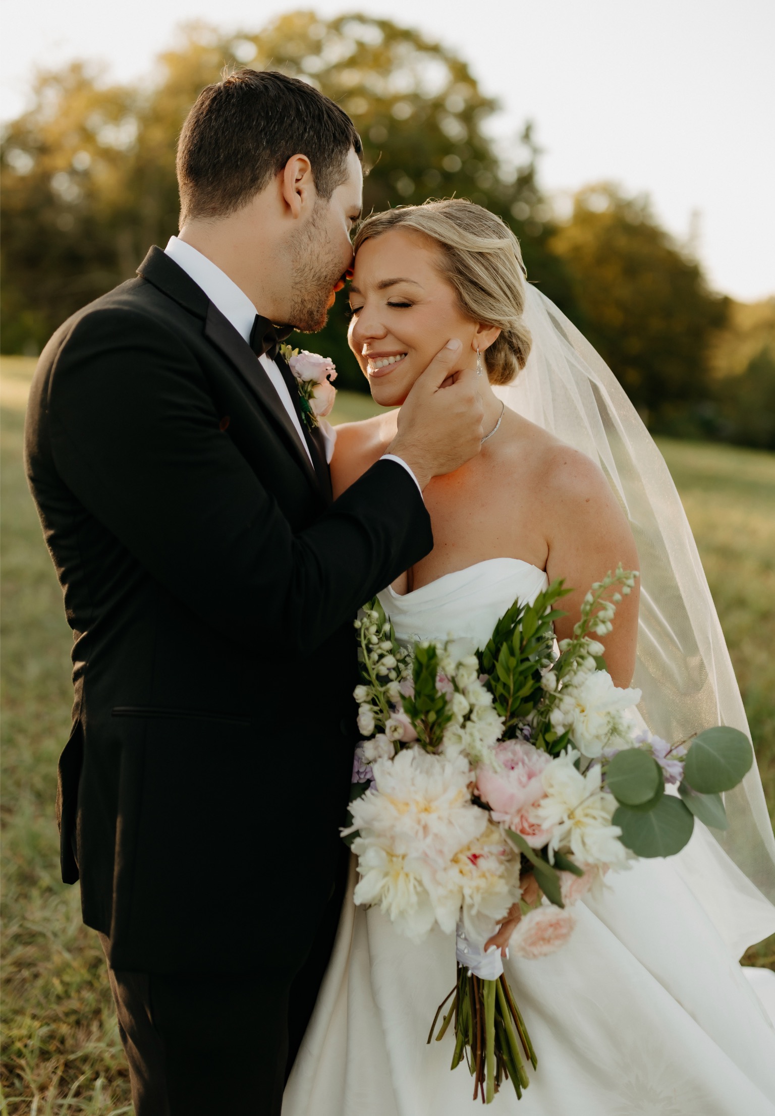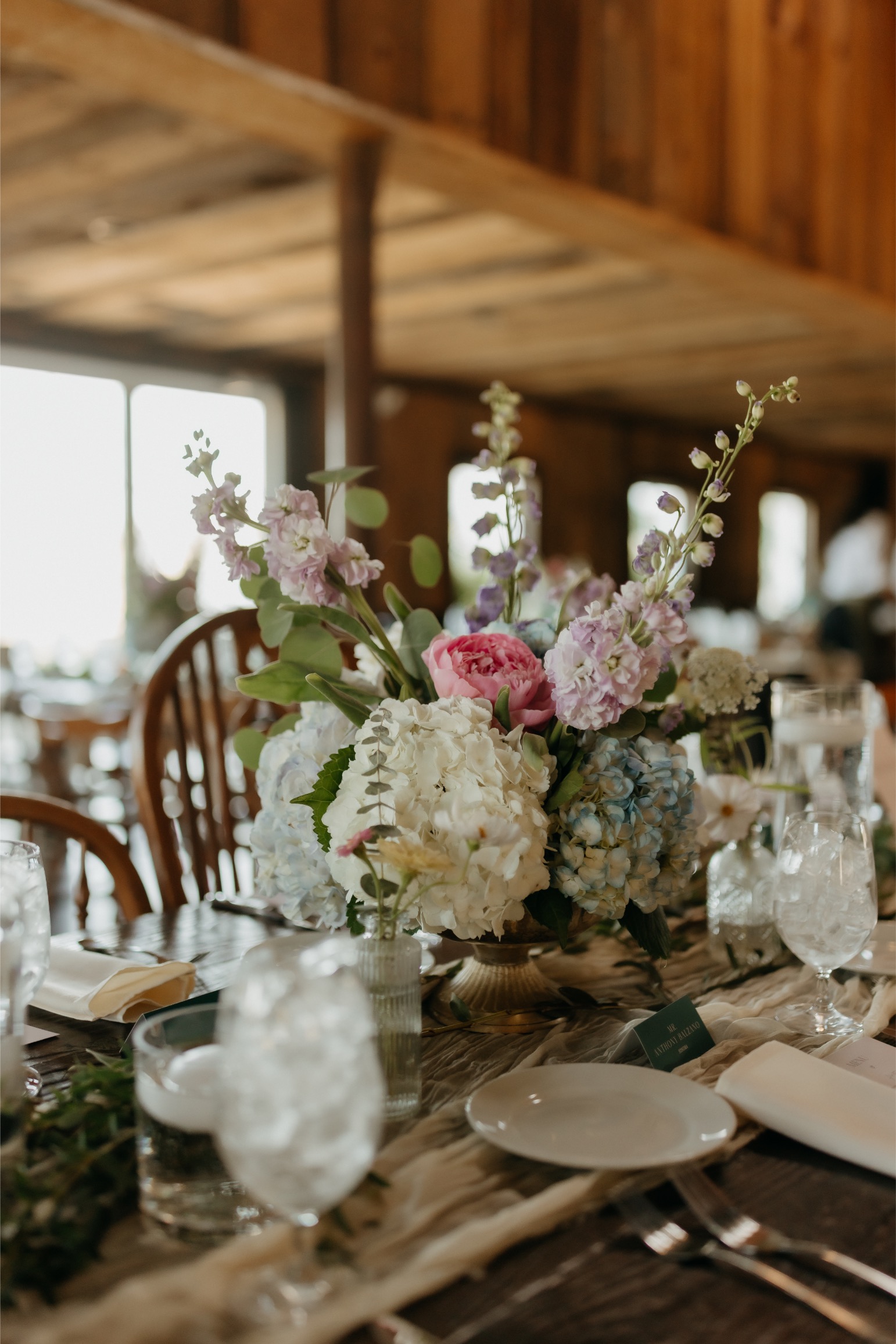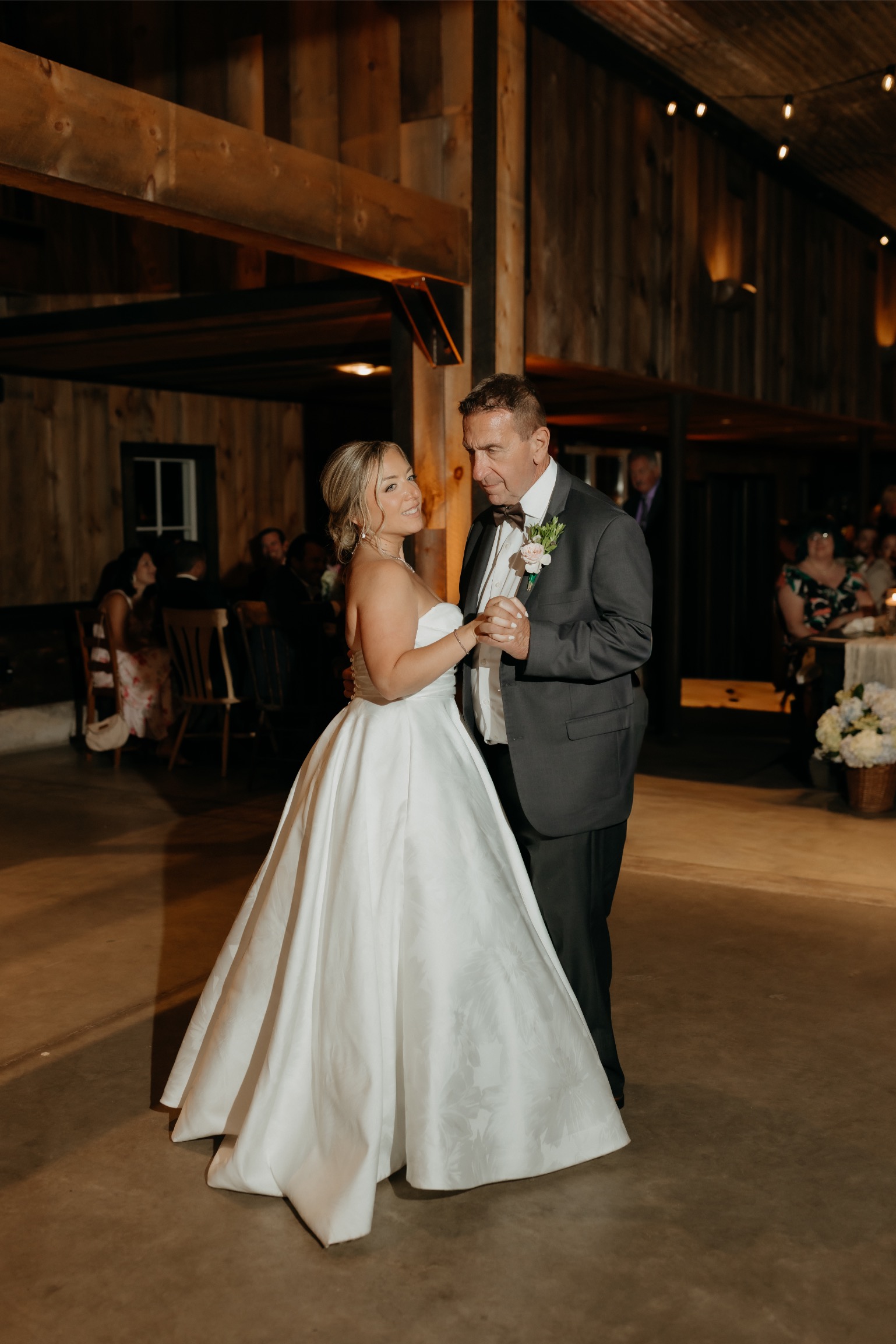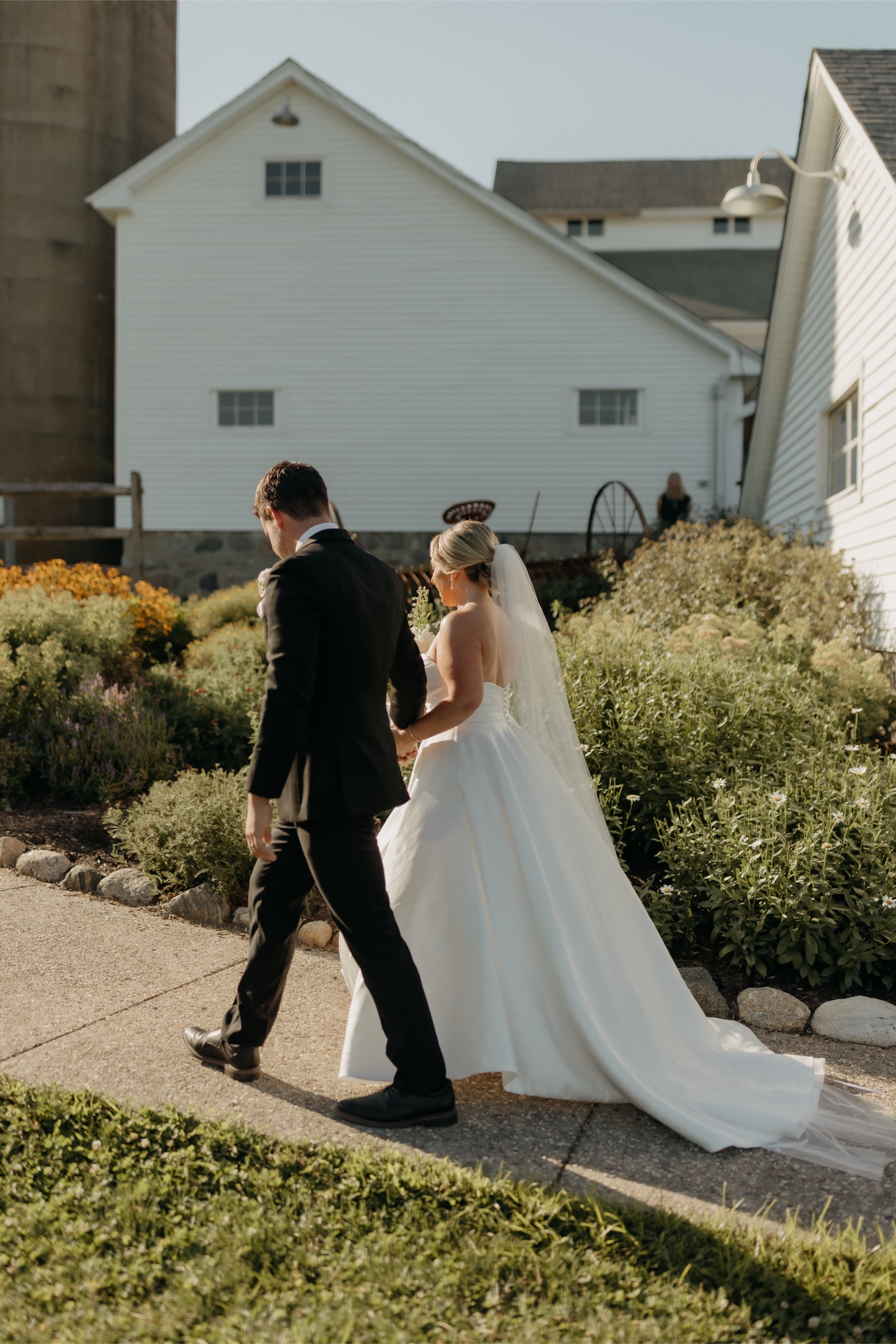We were married at South Farms in Morris, CT, a former cattle and dairy farm that has been transformed into a stunning venue. The barn’s history is honored through its preserved structure and signs, while the interior has been elevated for elegant celebrations. Surrounded by Litchfield County’s rolling hills, wildflowers, and canopy forests, it was a dream backdrop. At one point, the cows even mooed as I walked down the aisle — which made for some amazing candid photos!