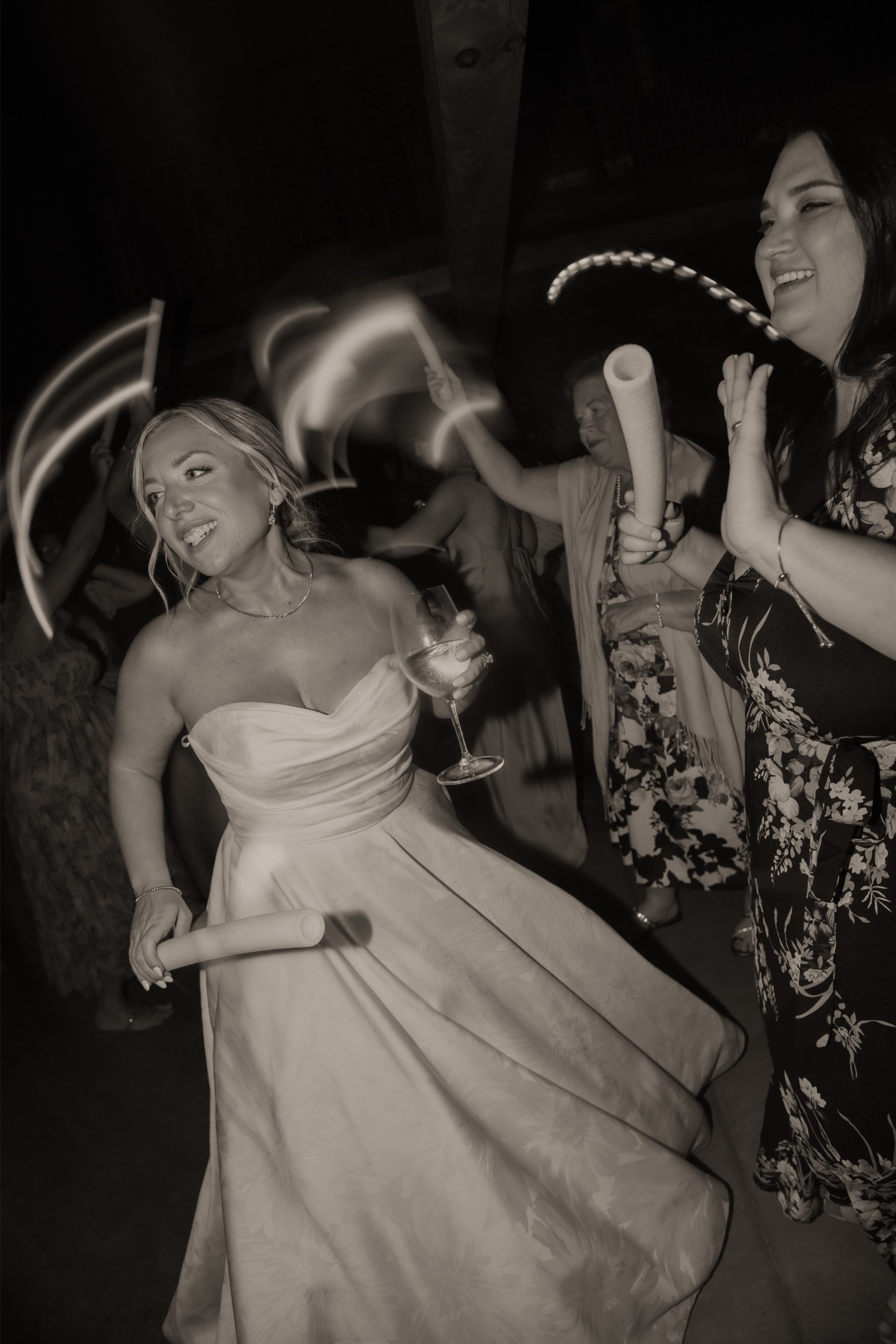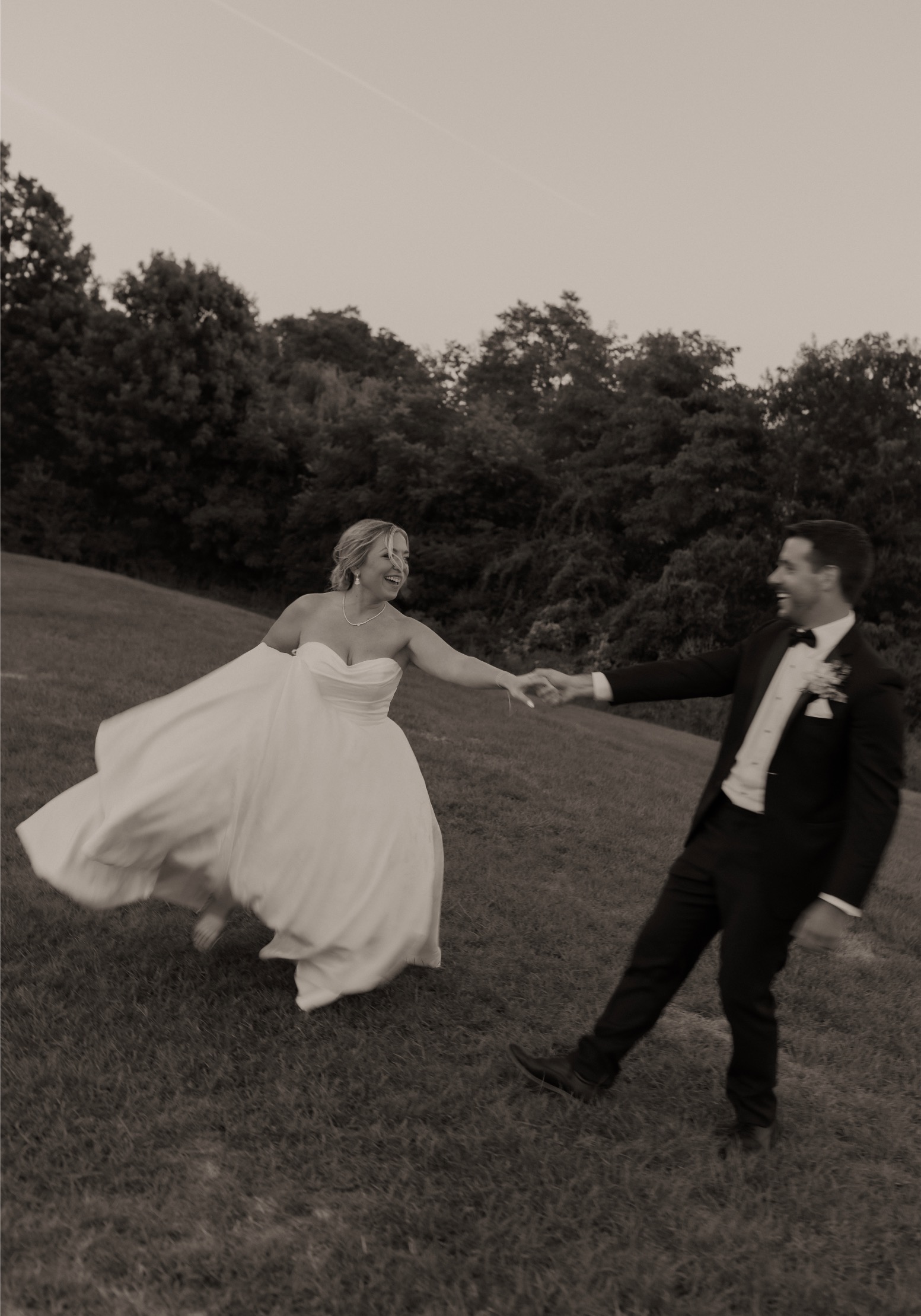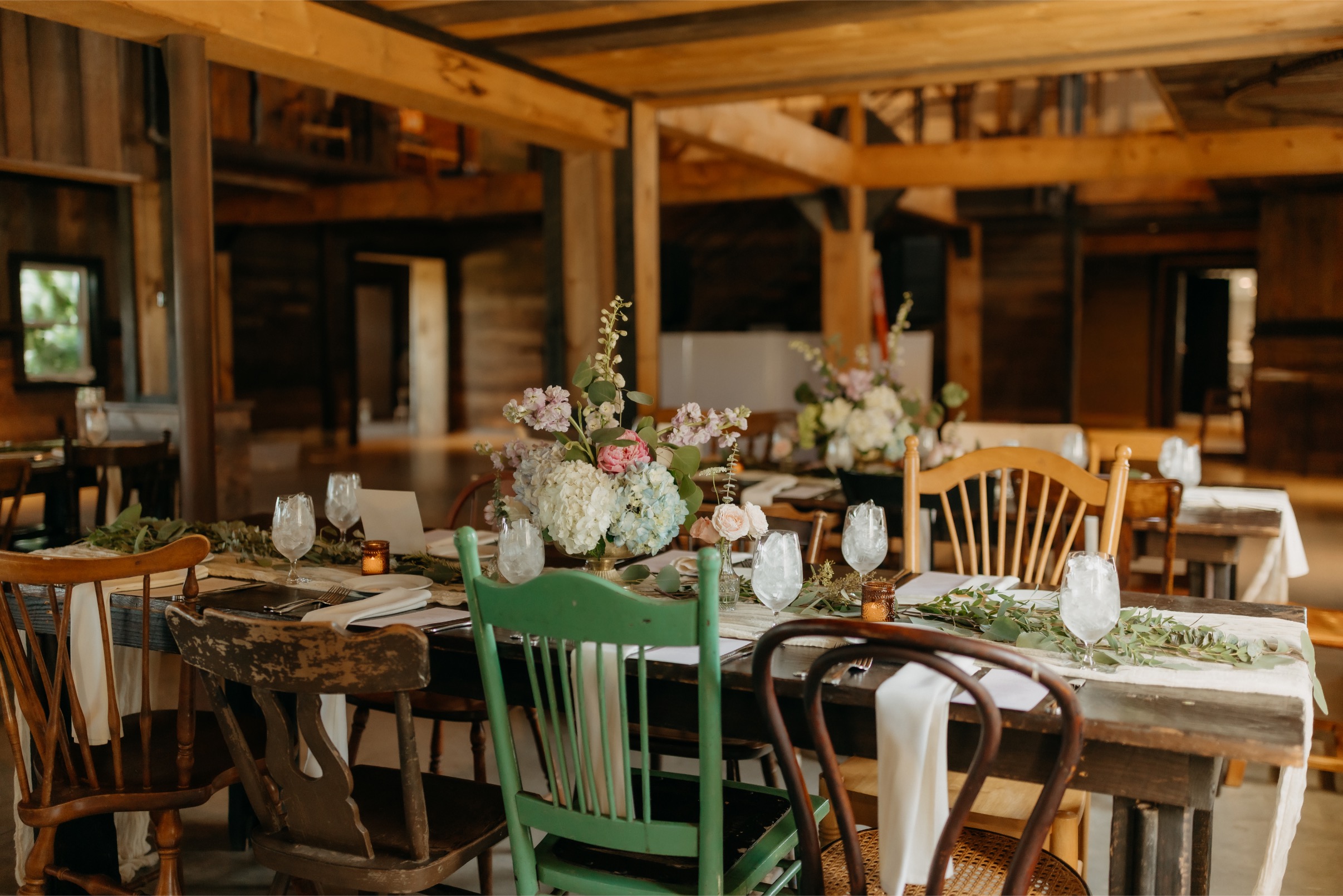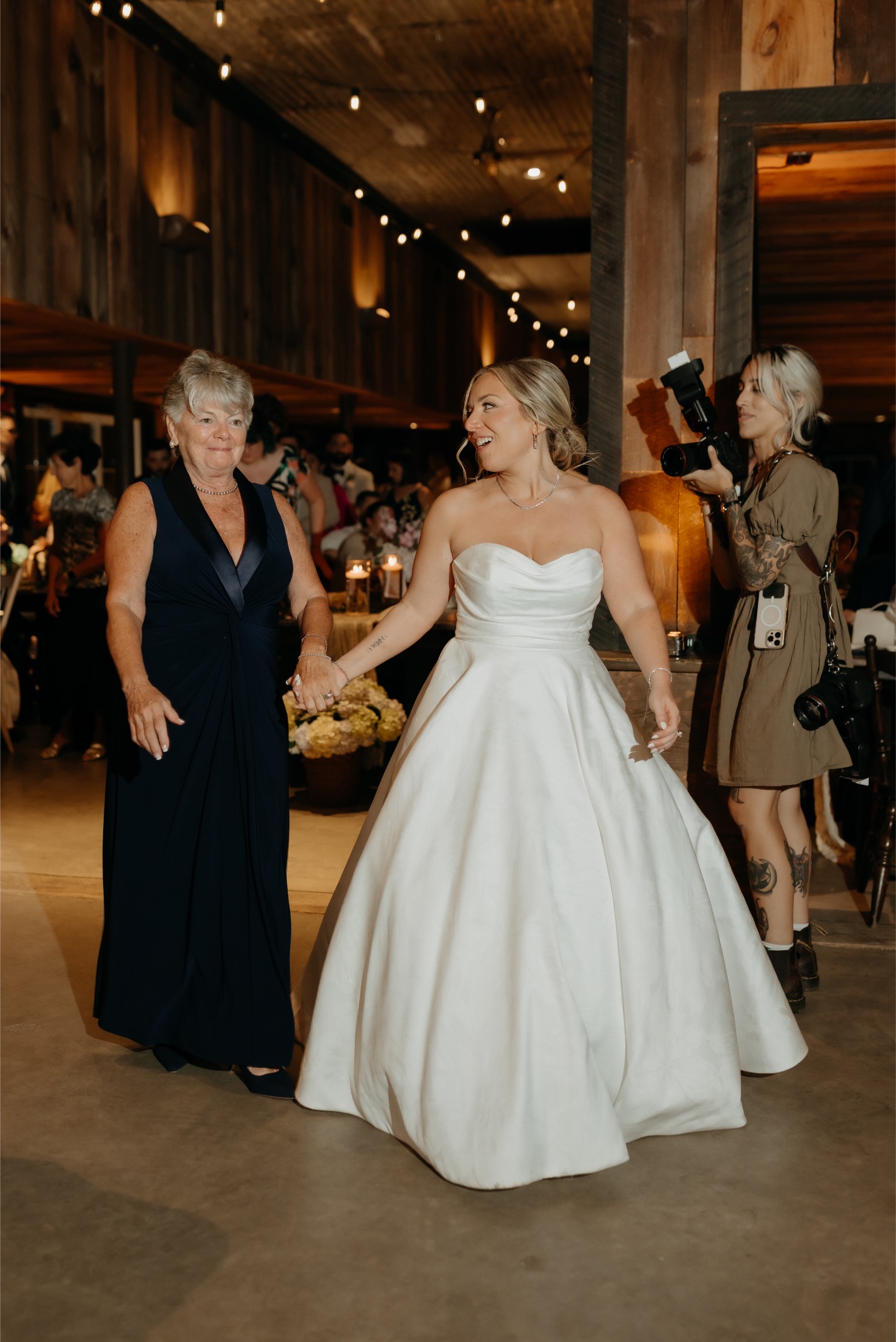 We were married at South Farms in Morris, CT, a former cattle and dairy farm that has been transformed into a stunning venue. The barn’s history is honored through its preserved structure and signs, while the interior has been elevated for elegant celebrations. Surrounded by Litchfield County’s rolling hills, wildflowers, and canopy forests, it was a dream backdrop. At one point, the cows even mooed as I walked down the aisle — which made for some amazing candid photos!