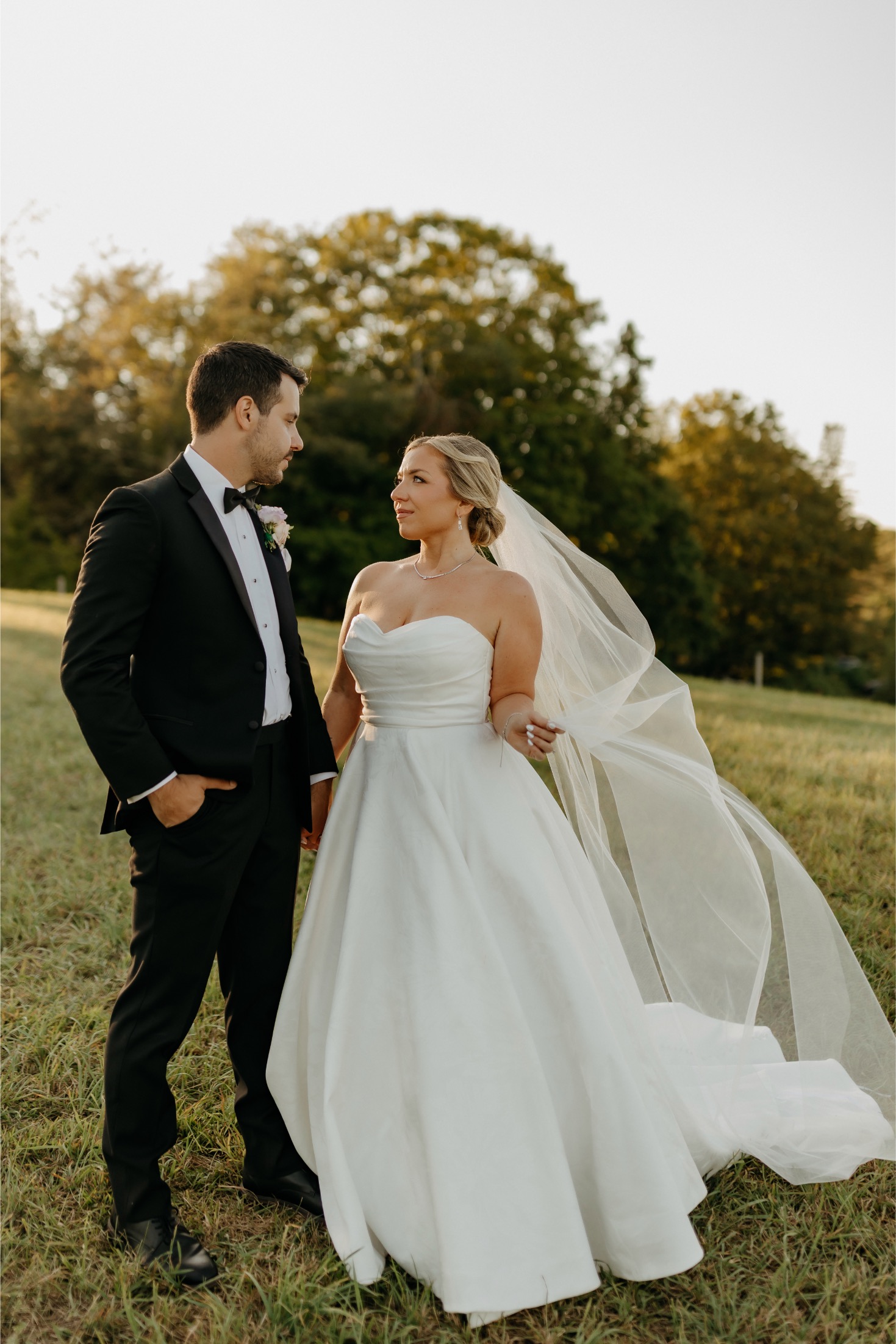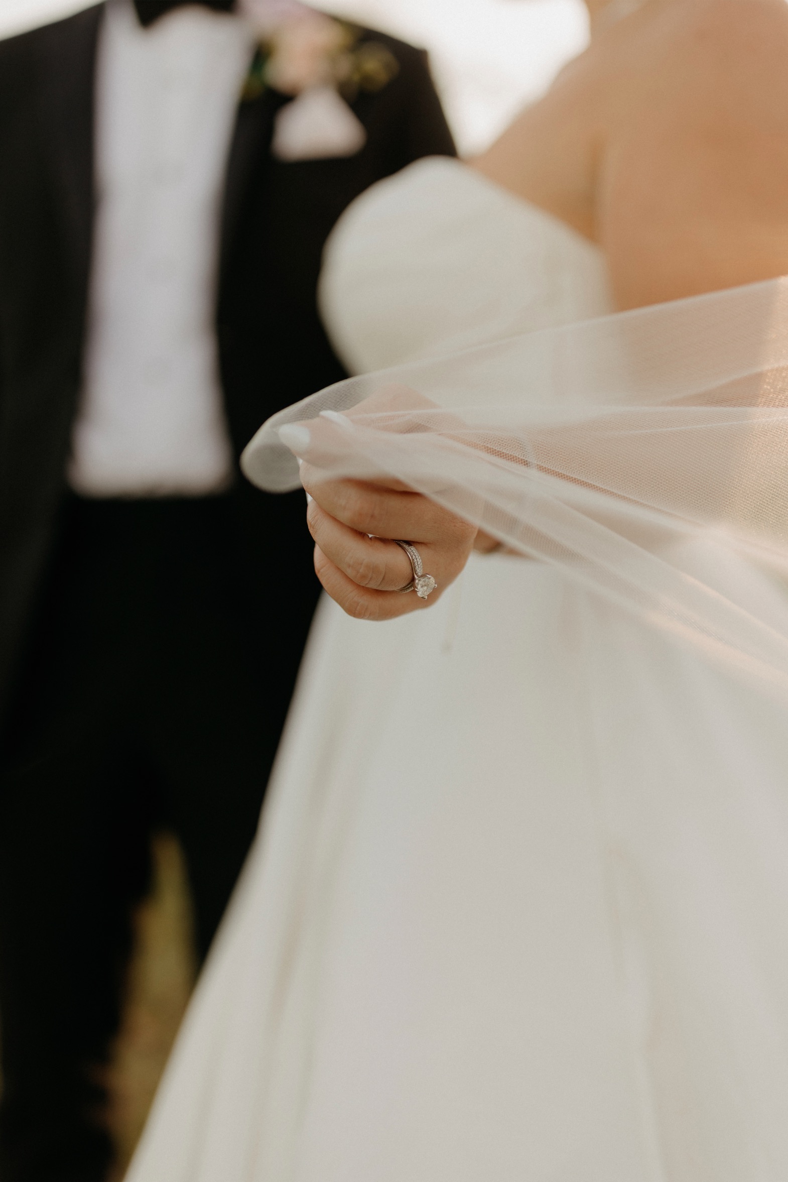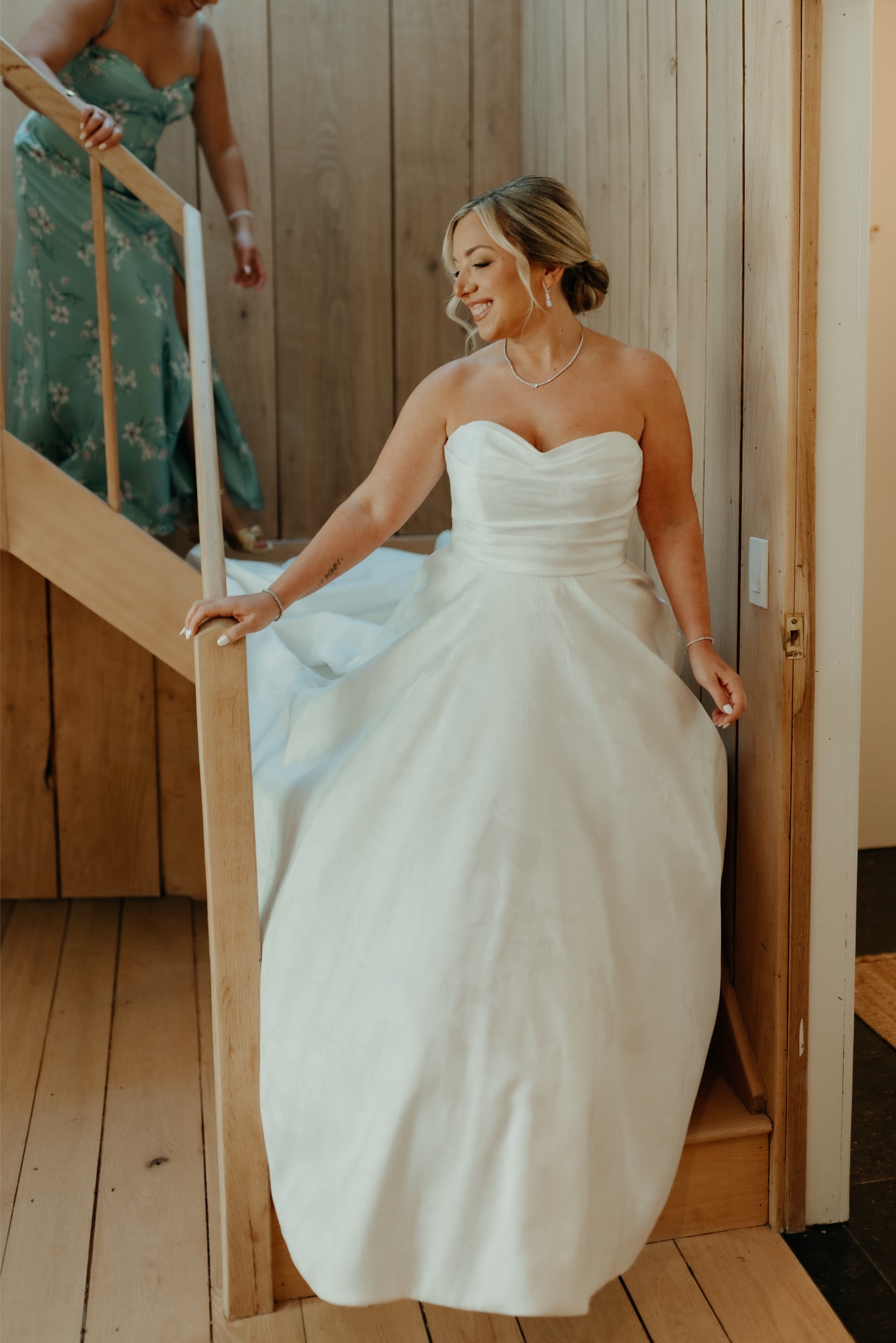 That all changed when I went to The Persnickety Bride in Newtown, CT, and met Denise. Instead of asking what I liked, she asked me to explain what I didn’t like about each dress I had tried on. After listening, she smiled and said, “I have the perfect dress for you.” She pulled out the Esme gown — and the second I slipped it on, it fit like a glove. It checked every single box, I fell in love with the fabric and the subtle pattern, and I knew instantly it was the one.