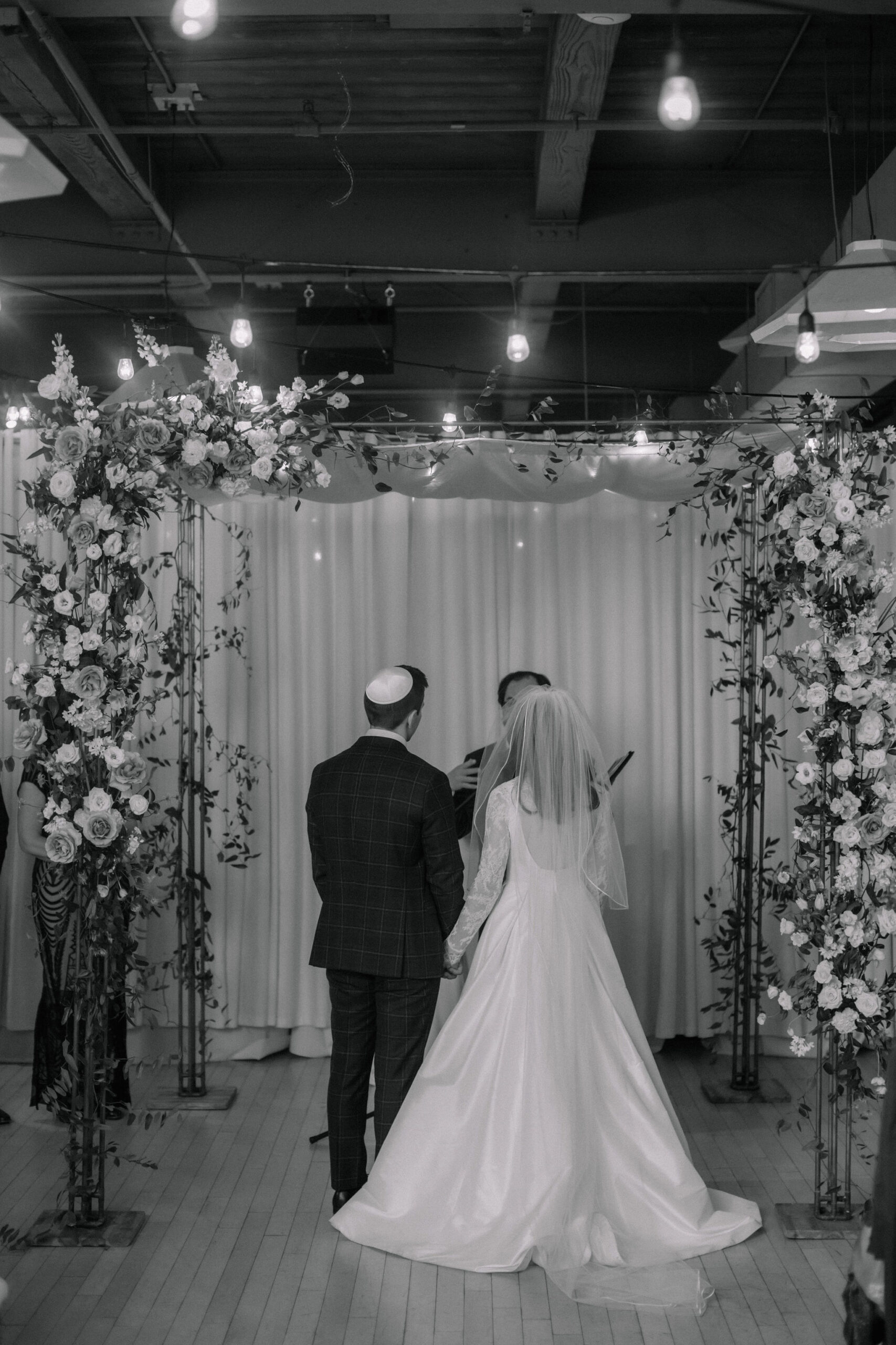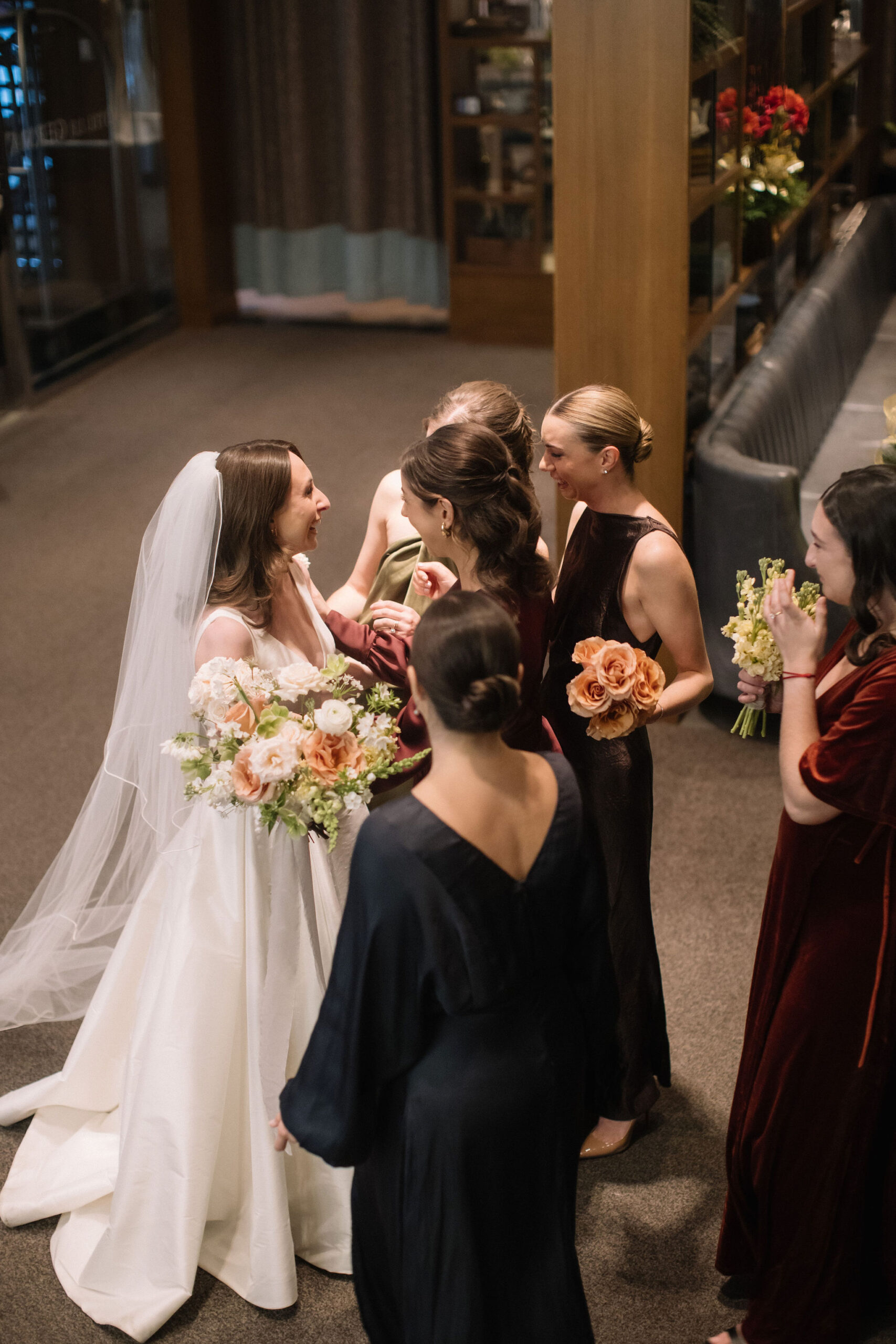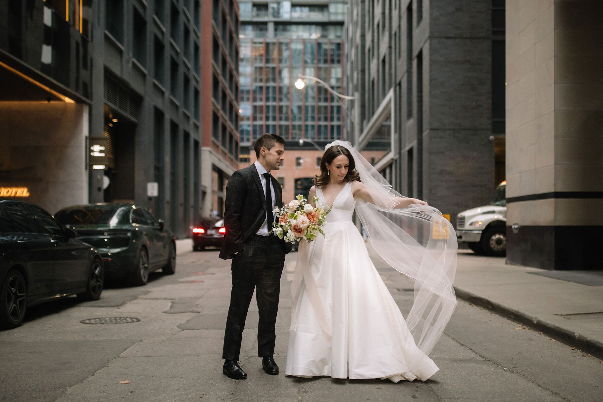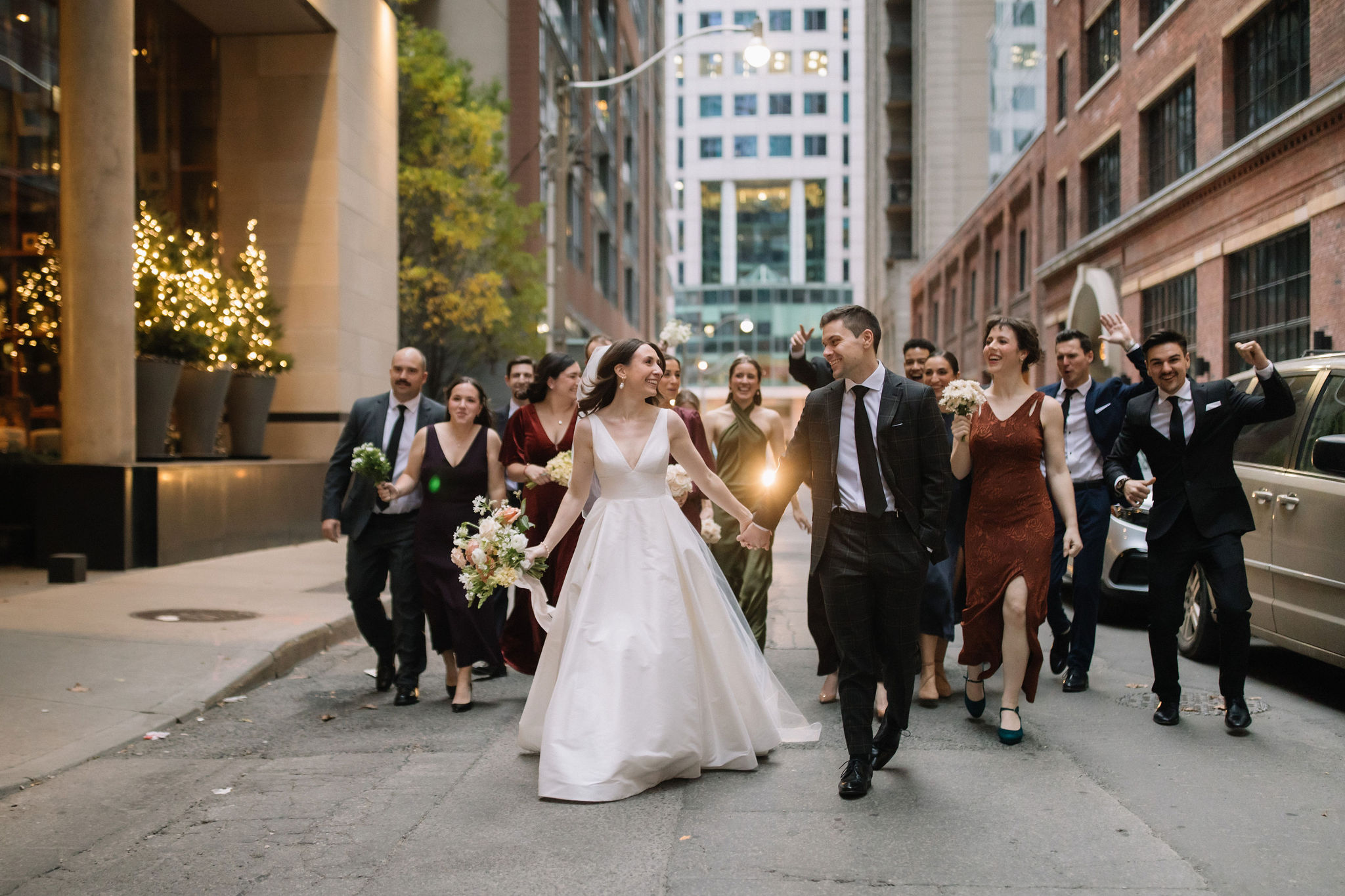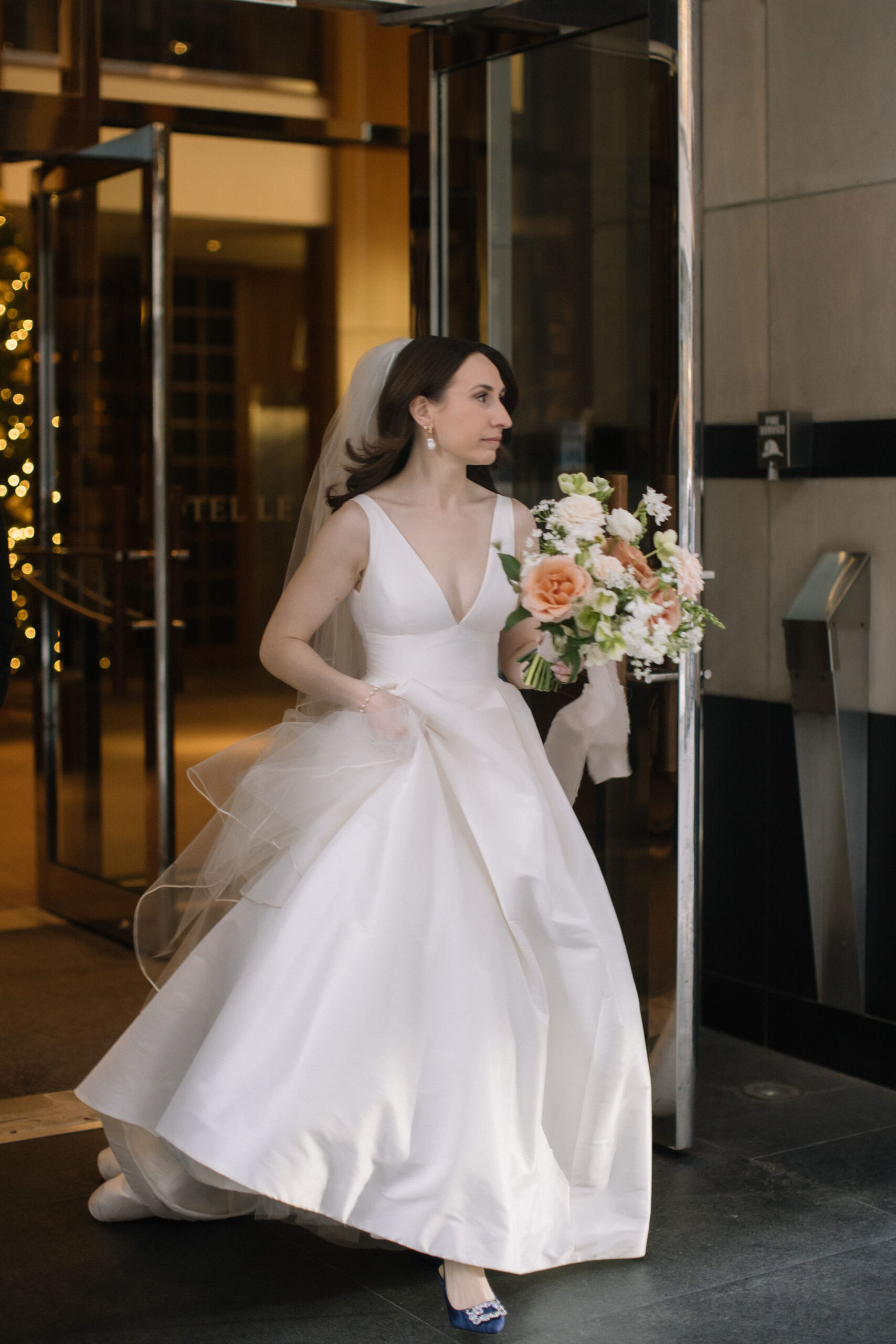 wedding dress: custom Astrid & Mercedes gown via the Lea-Ann Belter flagship Toronto boutique | photographer: Danielle Meredith Photography | make-up: Presley Foskett Makeup | hair: Bridal Hair Collective | venue: Le Germain Mercer (getting ready) & Second Floor Events (ceremony & reception) | florals: A Wild Vine Floral Design Co.