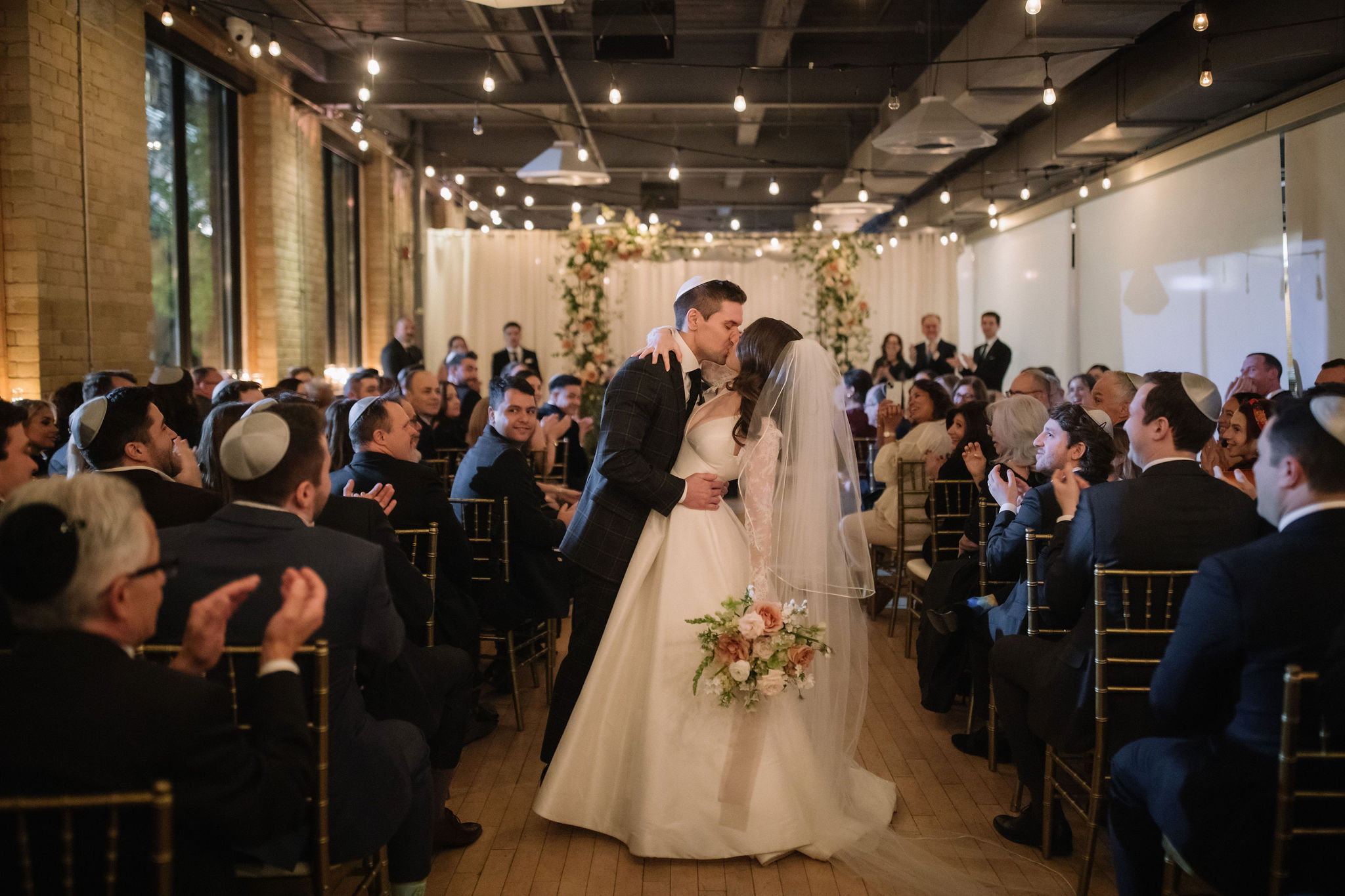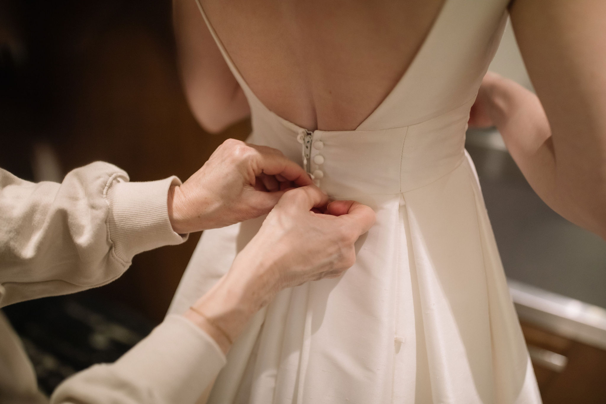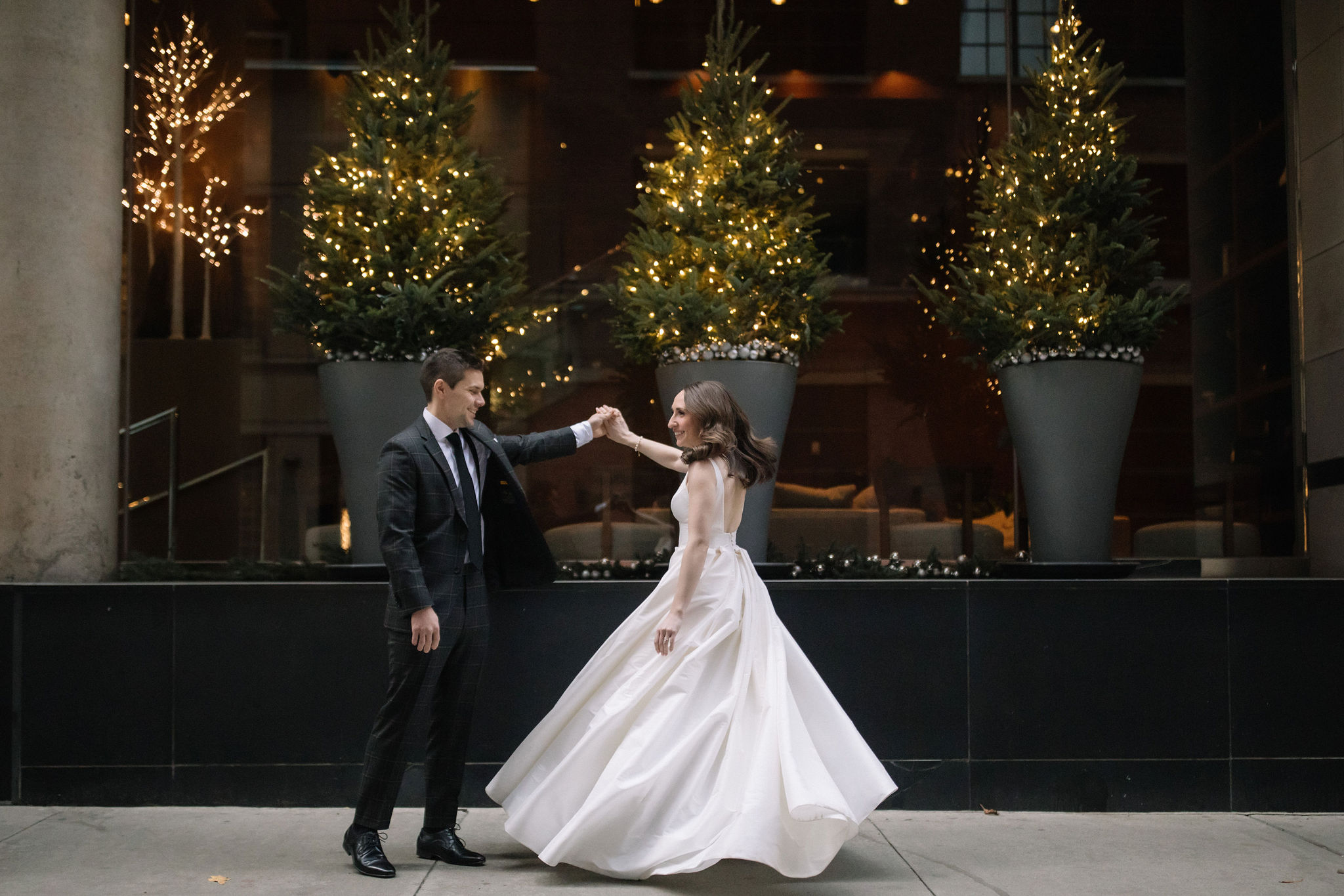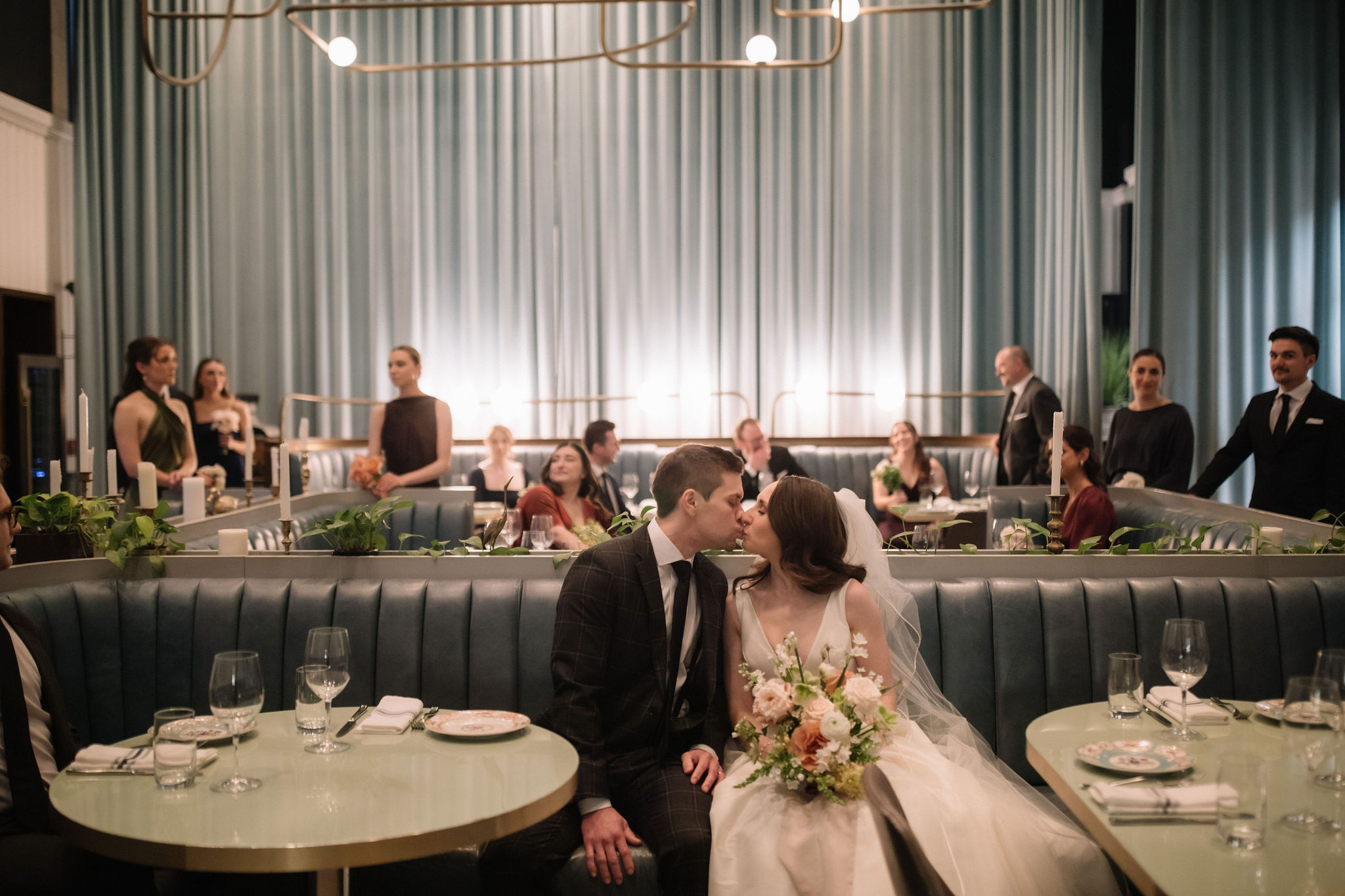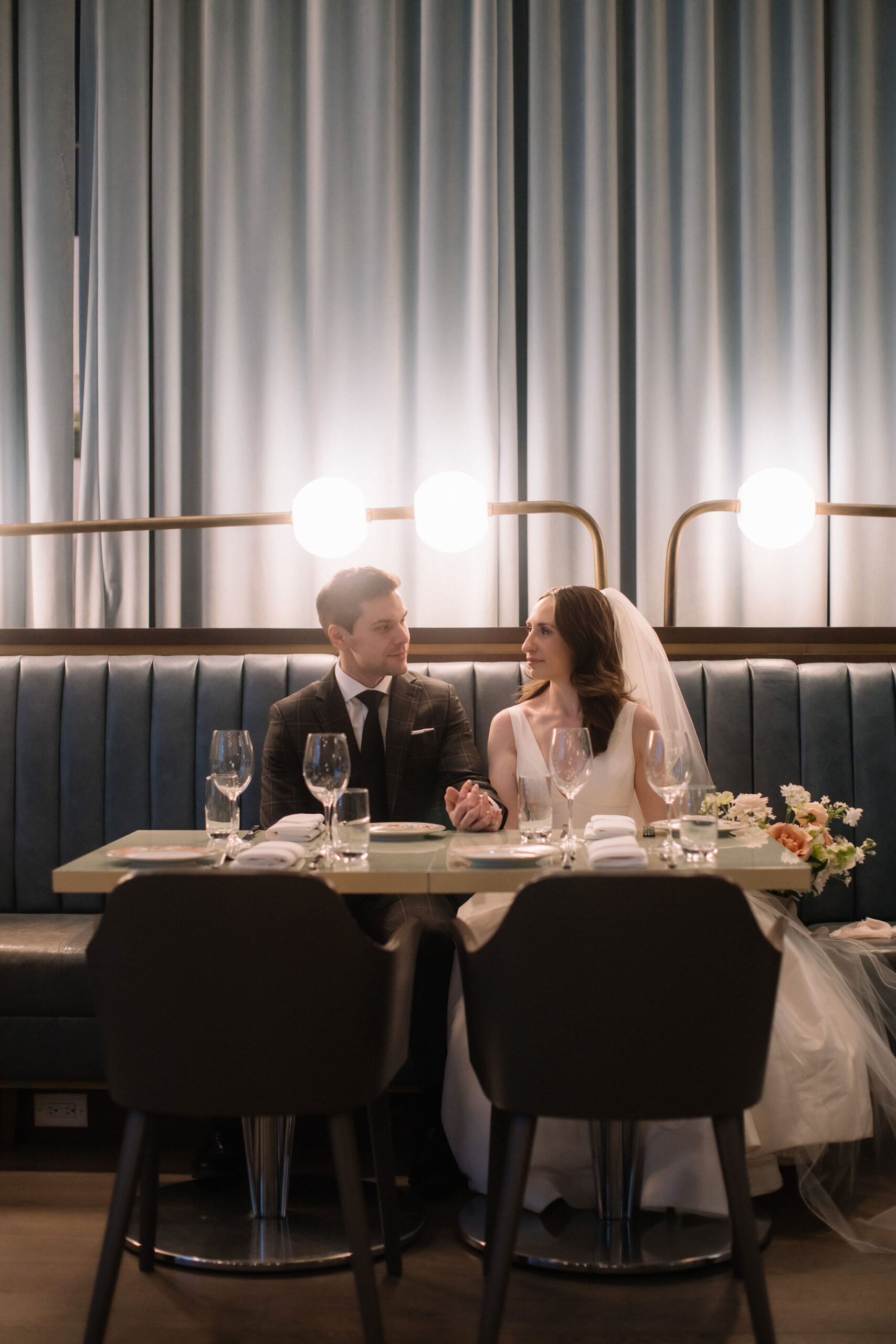 wedding dress: custom Astrid & Mercedes gown via the Lea-Ann Belter flagship Toronto boutique | photographer: Danielle Meredith Photography | make-up: Presley Foskett Makeup | hair: Bridal Hair Collective | venue: Le Germain Mercer (getting ready) & Second Floor Events (ceremony & reception) | florals: A Wild Vine Floral Design Co.