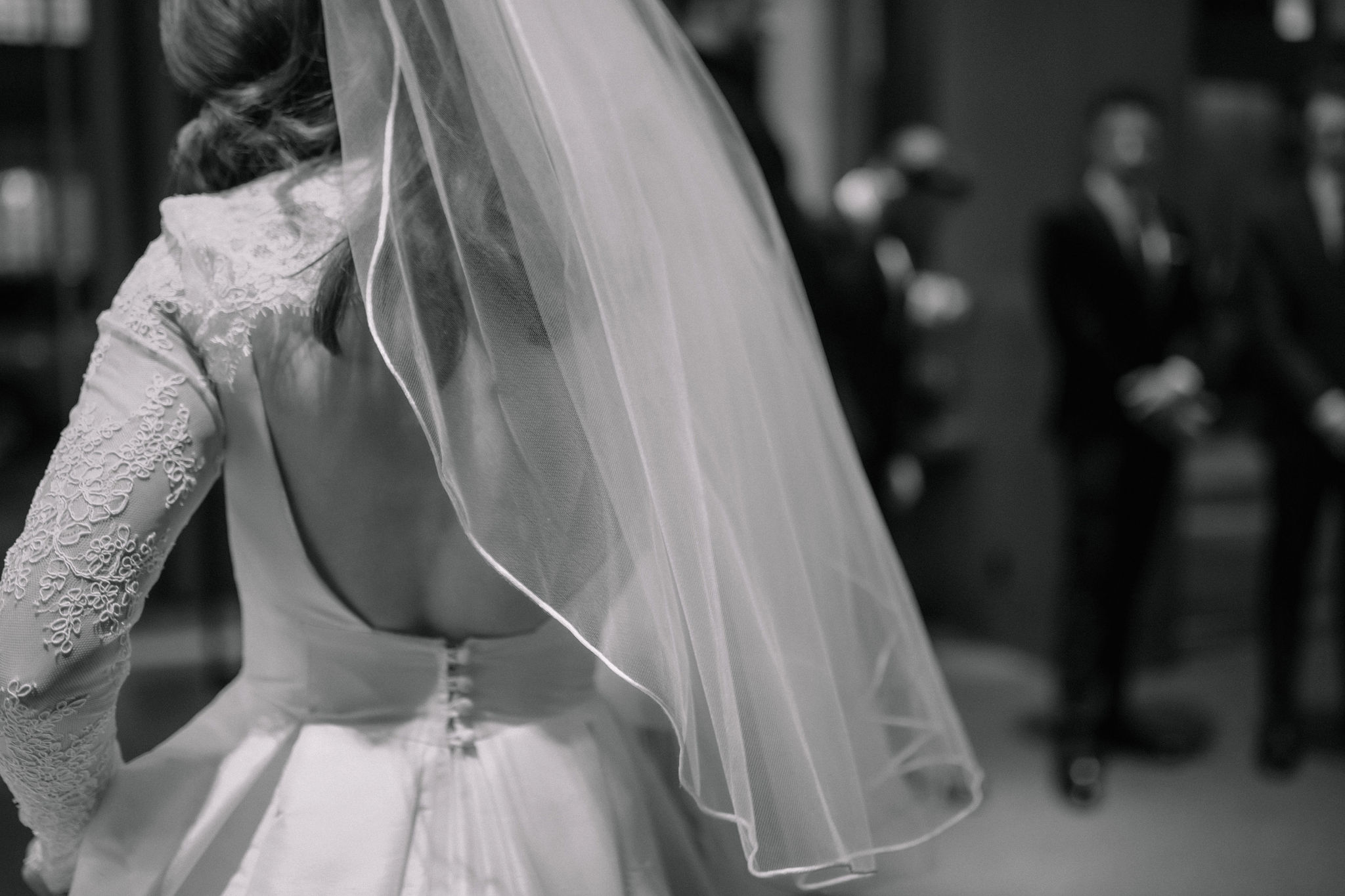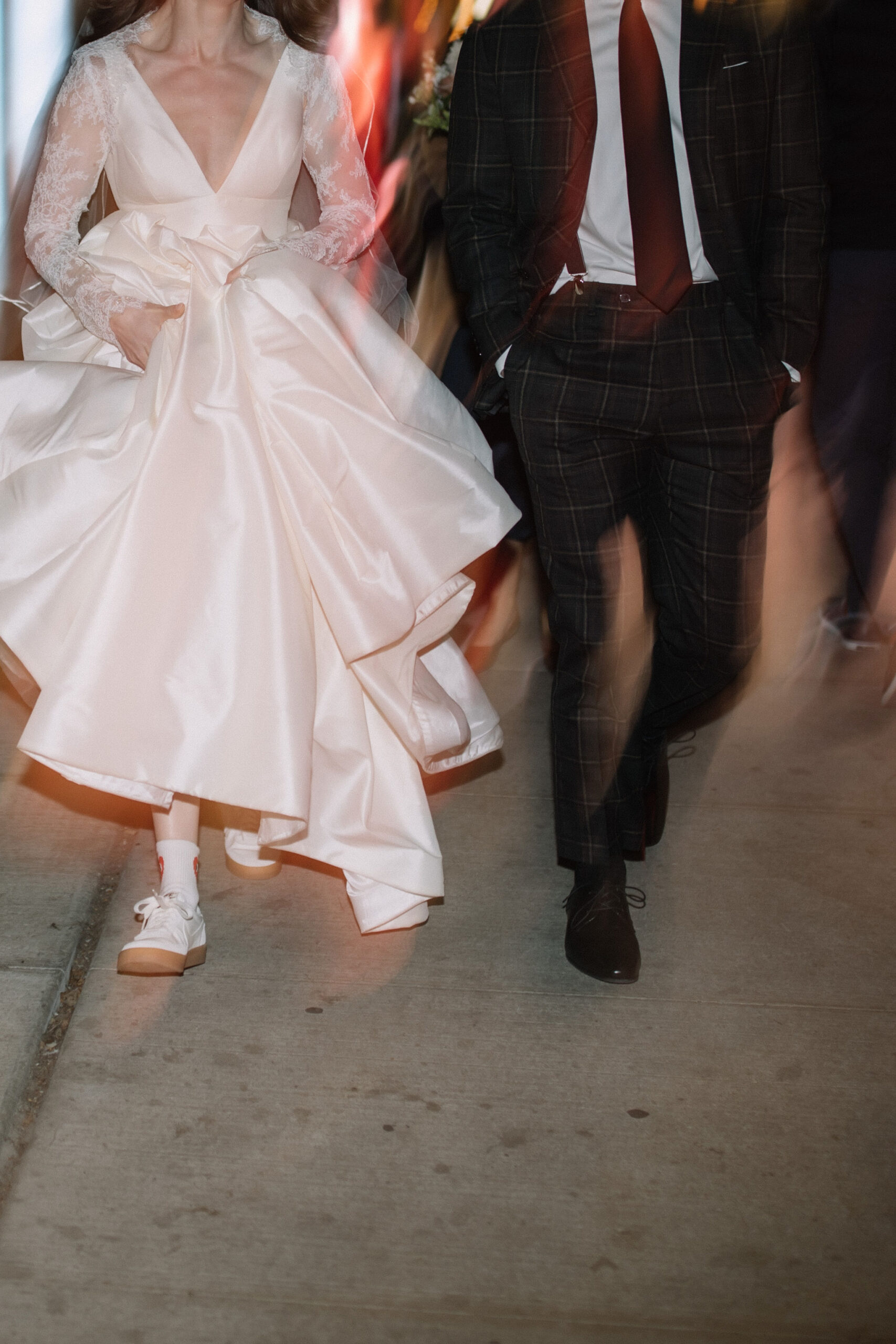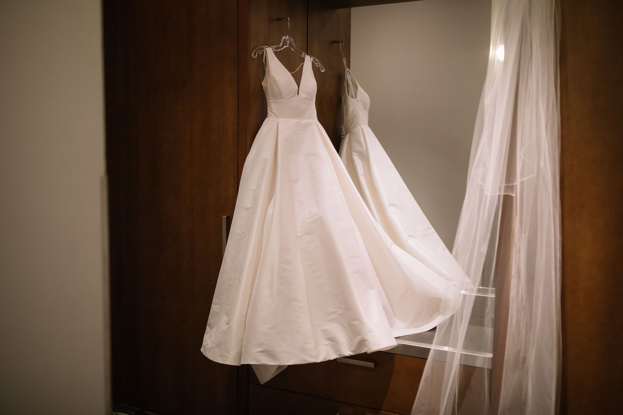As Carly visited Toronto bridal shops in search of a gown, she realized “ I didn’t feel like I was connecting with any of the dresses I was trying on.” When she arrived at the Lea-Ann Belter Bridal flagship boutique, she found the modern wedding dress she was looking for. “Vanessa was amazing – while we were trying different options we were discussing our mutual love of Mid Century Modern design and from that piece of information Vanessa was able to determine that I would probably gravitate towards a wedding gown that reflected the same era.”