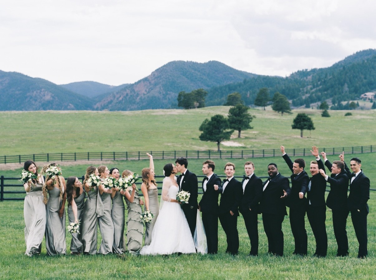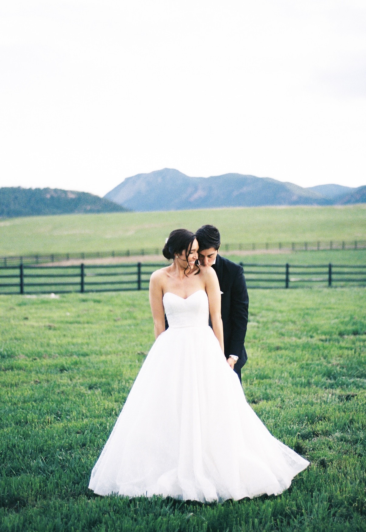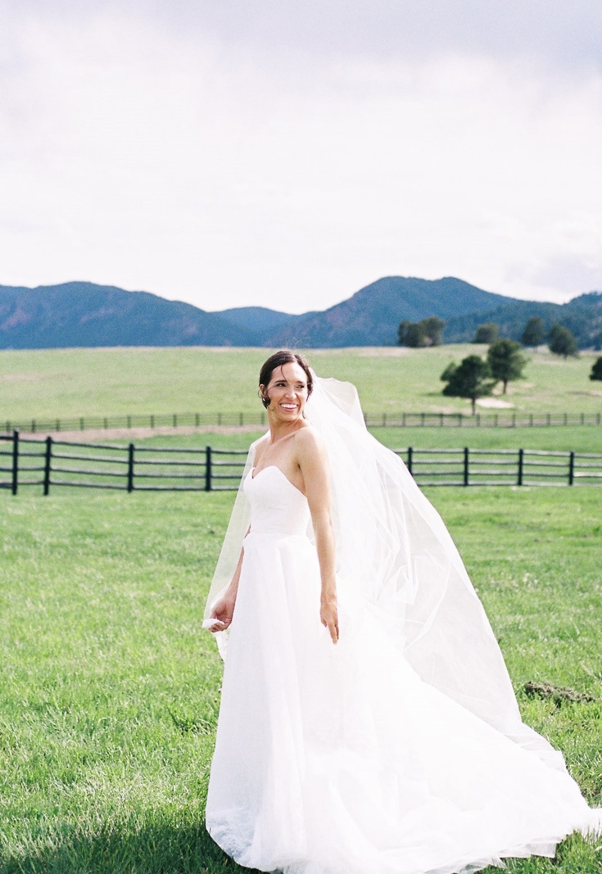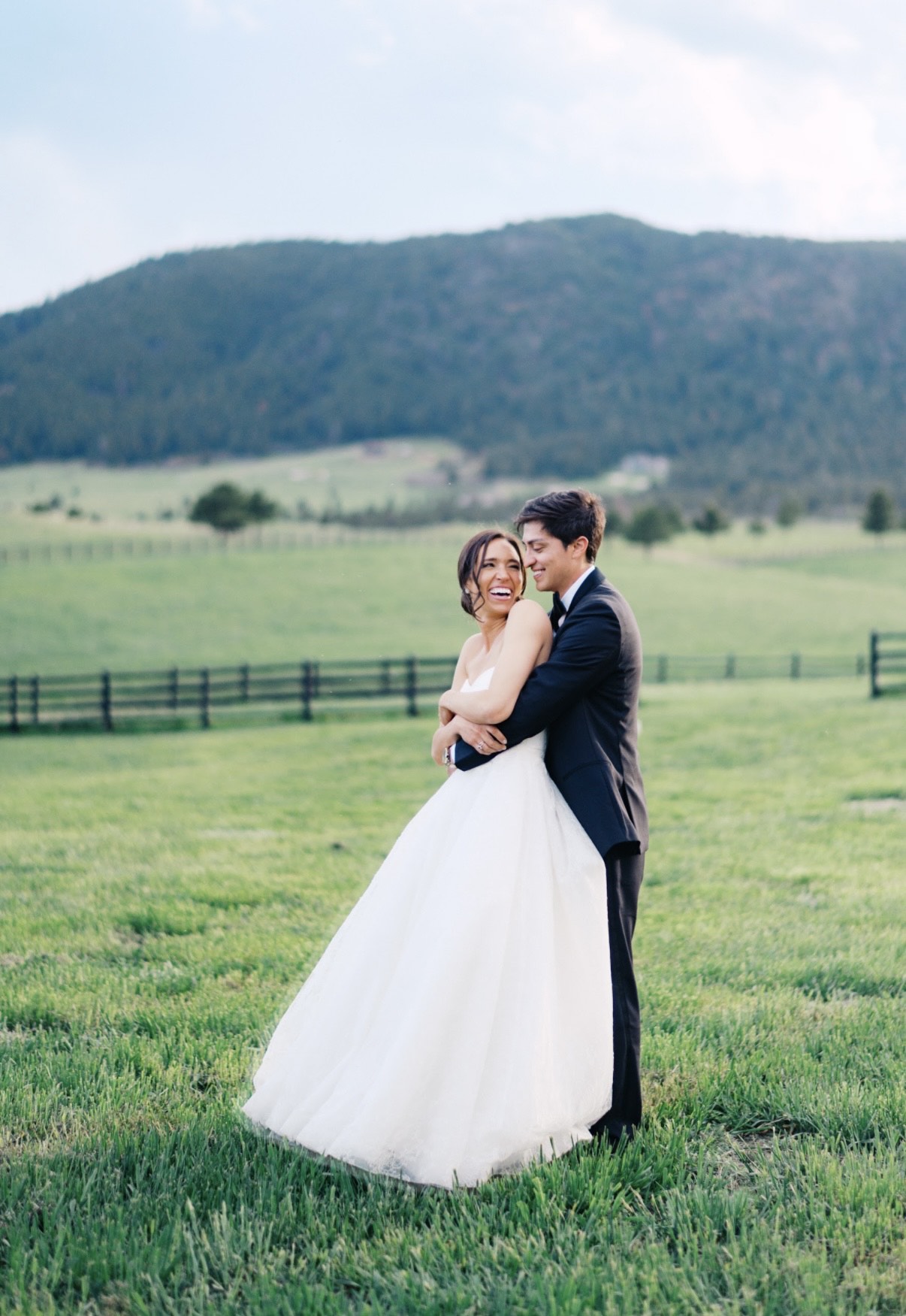wedding dress: Astrid & Mercedes Paradise ballgown and topper | photography: Josie V Photography | planner: Cloud 9 Denver | venue: Spruce Mountain Ranch | hair & make-up: Kim J Beauty | videographer: KLP Video | florist: Honey Rock Florals | catering: Biscuits and Berries Catering | rentals: Event Rents | bar: Peak Beverage | band: Homeslice Band | strings: Cloud 9 Strings