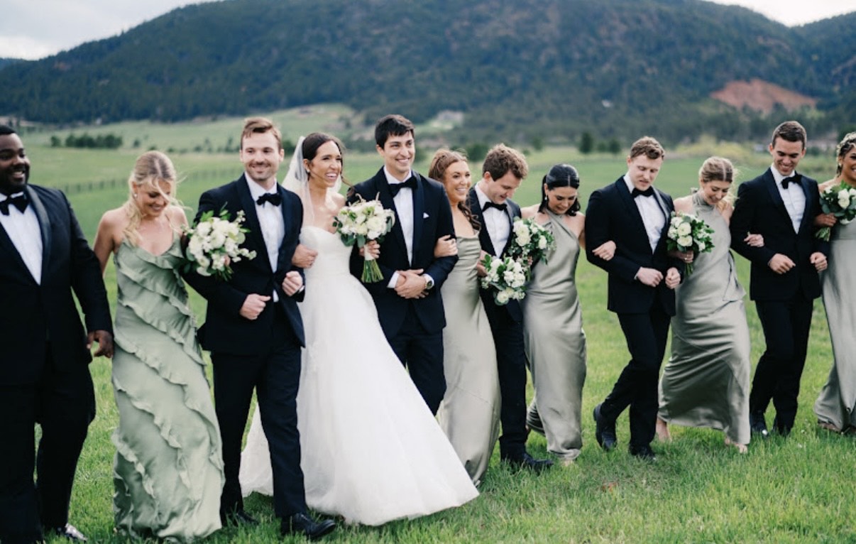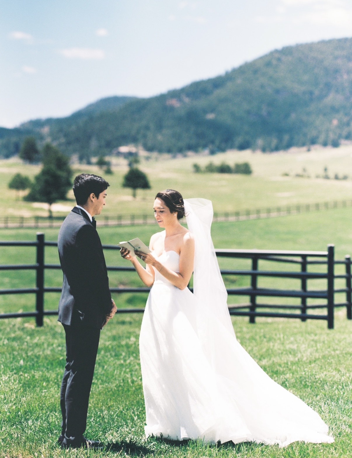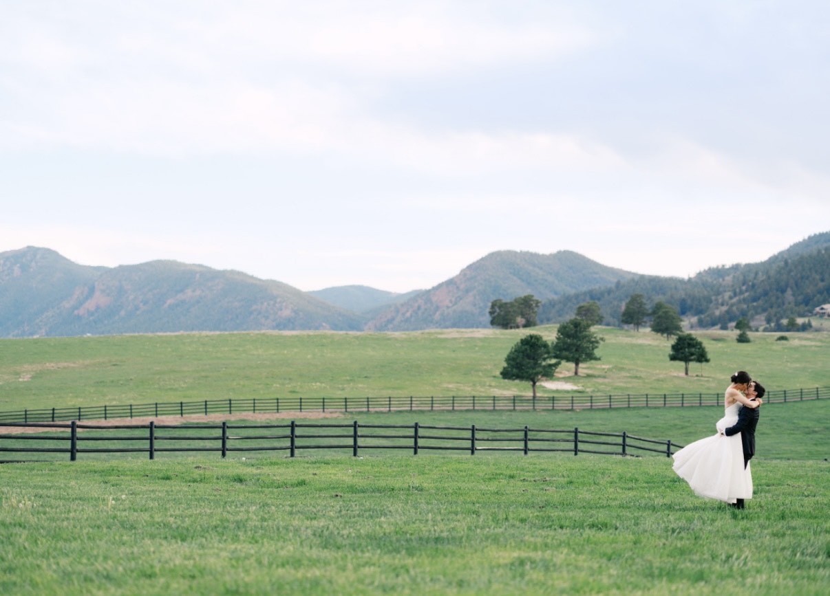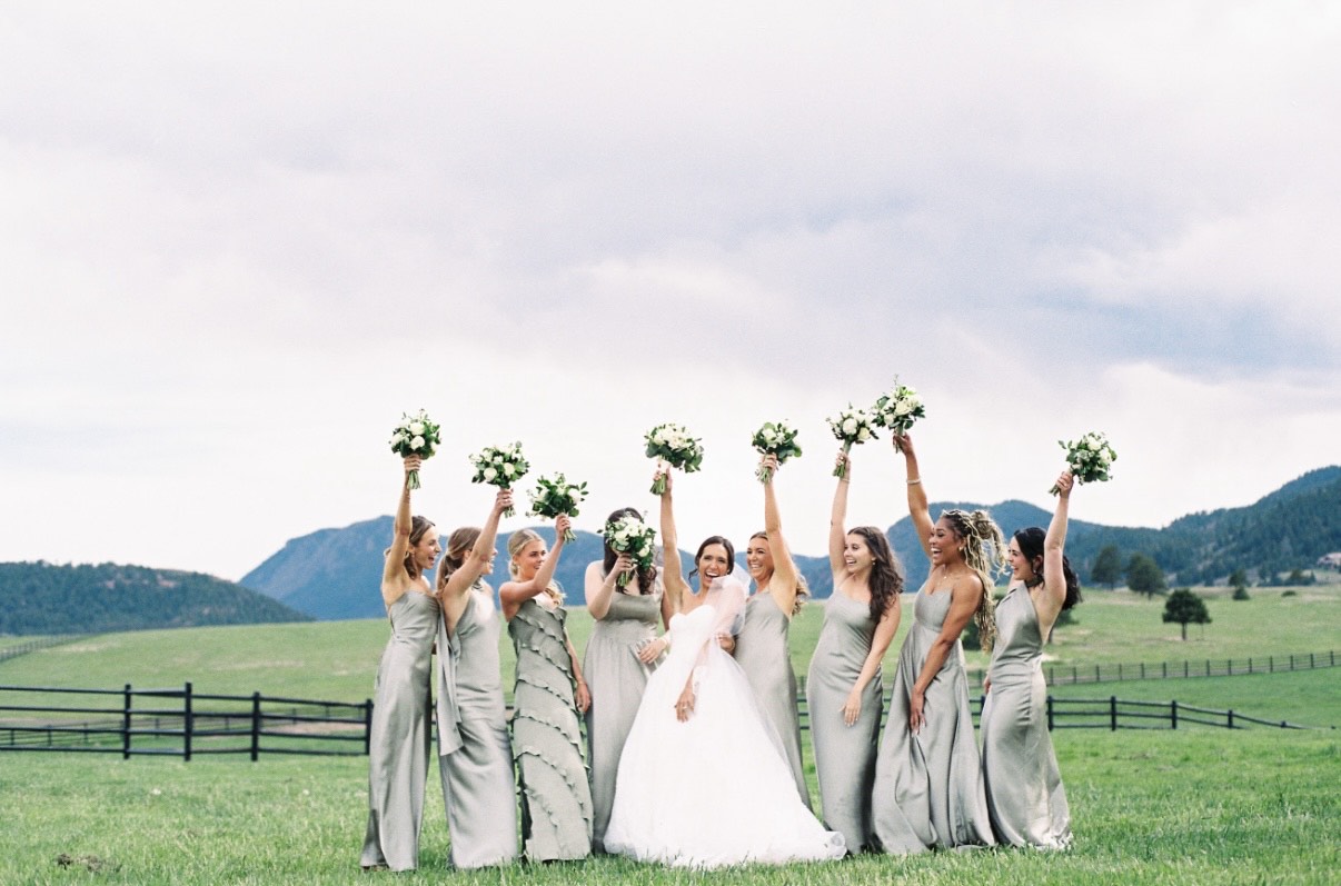 wedding dress: Astrid & Mercedes Paradise ballgown and topper | photography: Josie V Photography | planner: Cloud 9 Denver | venue: Spruce Mountain Ranch | hair & make-up: Kim J Beauty | videographer: KLP Video | florist: Honey Rock Florals | catering: Biscuits and Berries Catering | rentals: Event Rents | bar: Peak Beverage | band: Homeslice Band | strings: Cloud 9 Strings