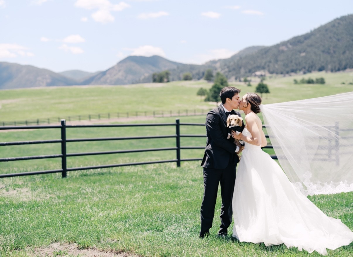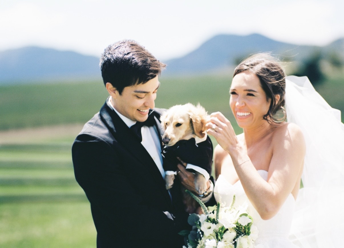 Get all the details about their Colorado ranch wedding (which included their adorable Dachshund puppy, Stanley!) and David’s sweet, mishap-fraught Versailles proposal below.