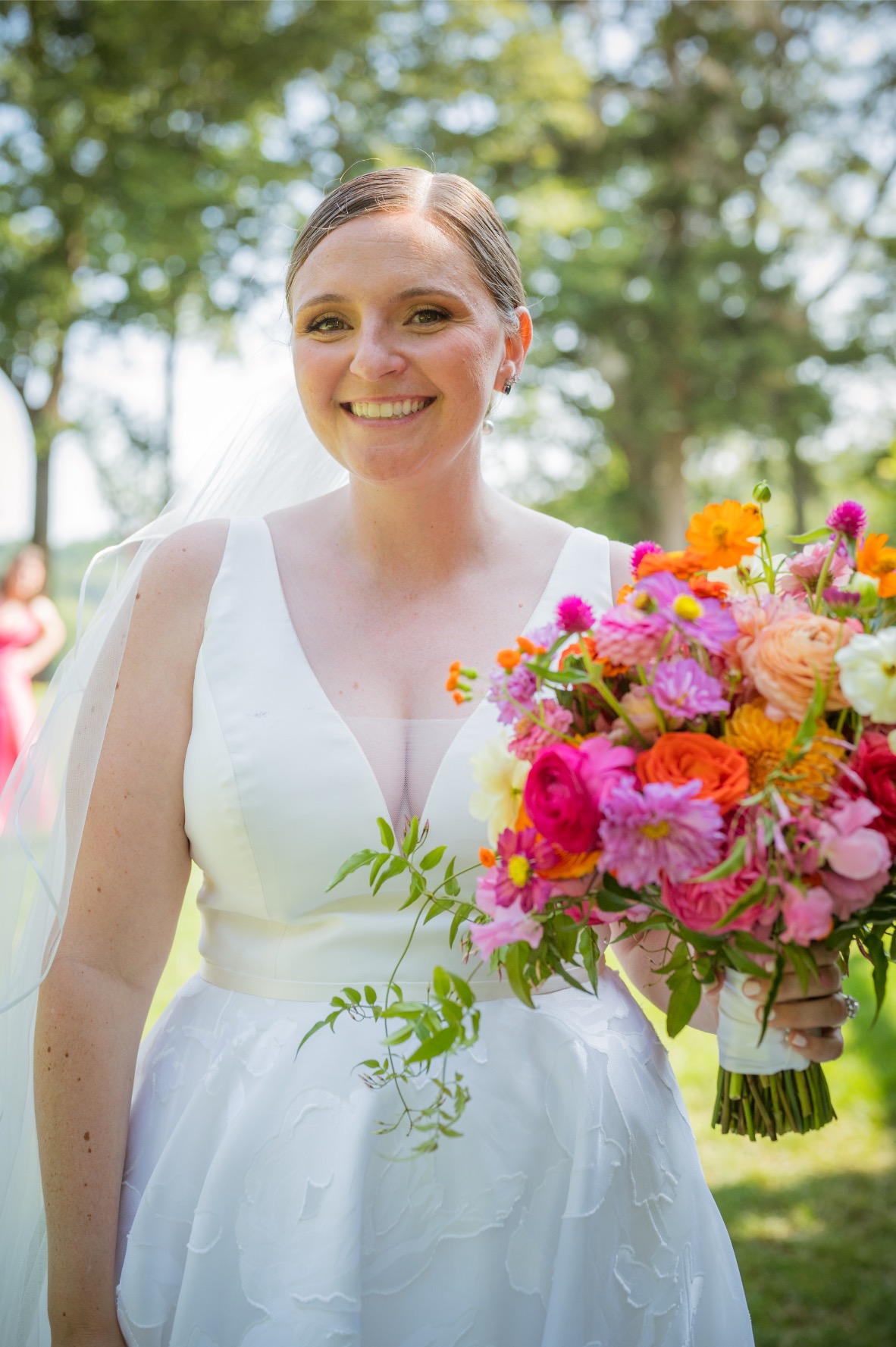 She slipped on Sofia, and it was love. “Nothing compared to my gown. Even now, with so many friends sharing their own wedding photos on social media, I’ve yet to see another gown that stands out the way mine did. It felt light and airy, with the floral accents I’ve always loved, making it truly perfect for me.”