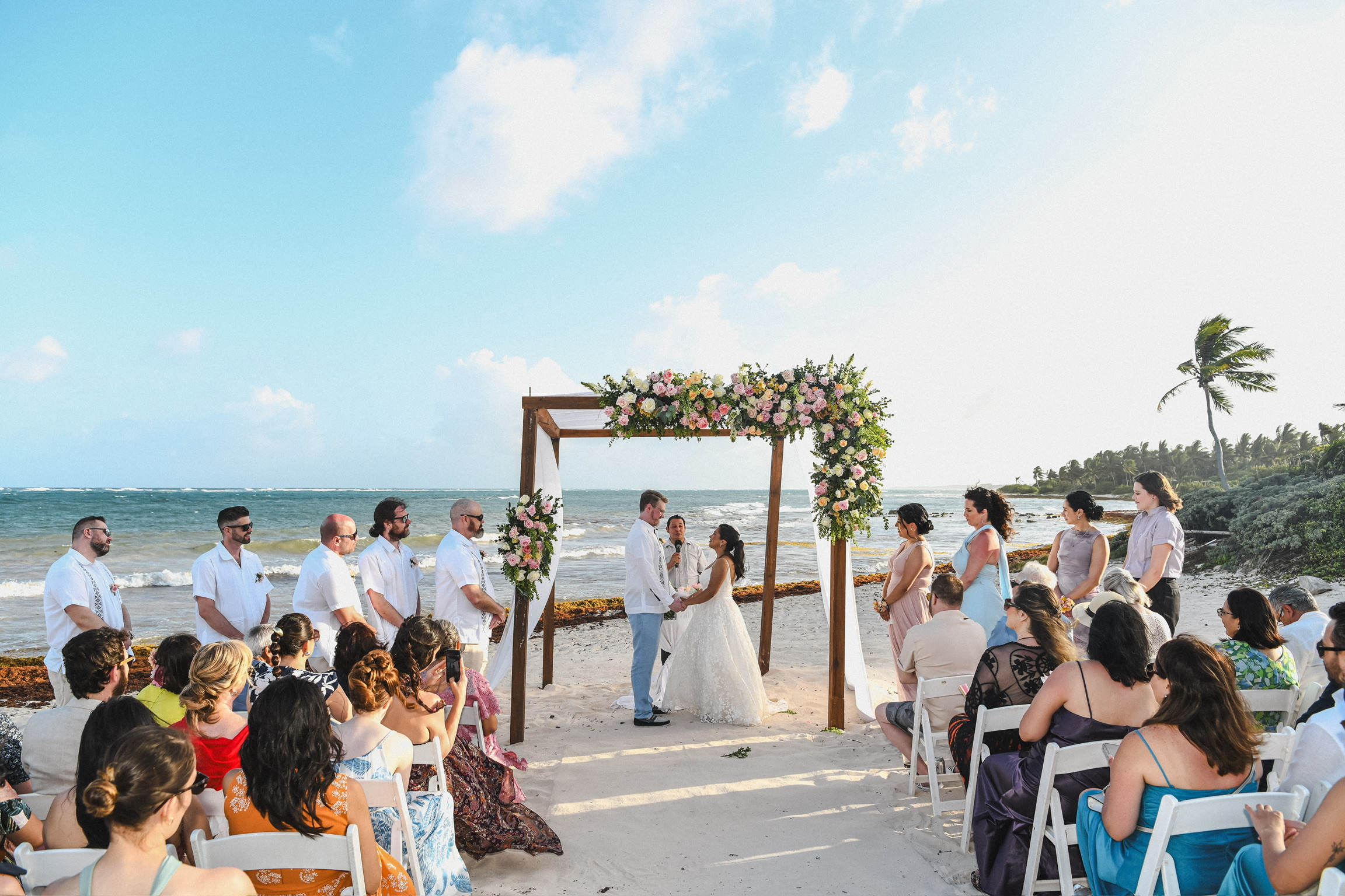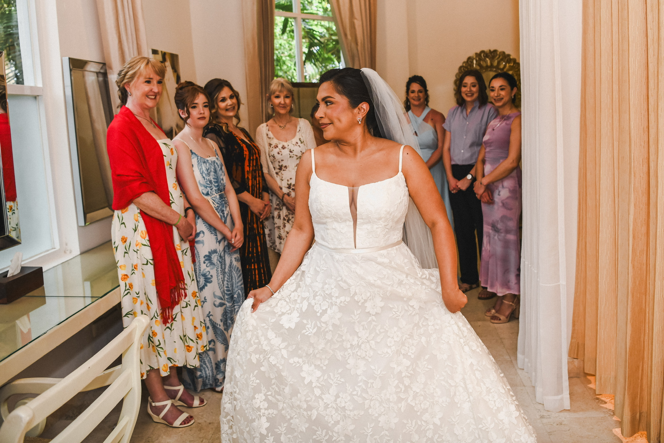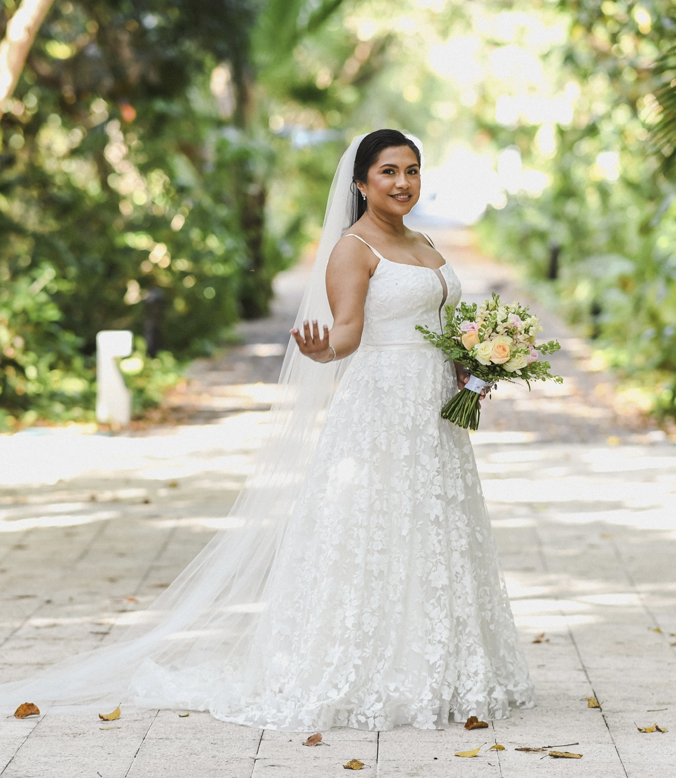 wedding dress: Lea-Ann Belter Harper gown from the flagship Toronto bridal shop | venue: Dreams Tulum | photo + video: PhotoDreamsTulum | makeup + hair: Sara Tamargo Makeup Artist