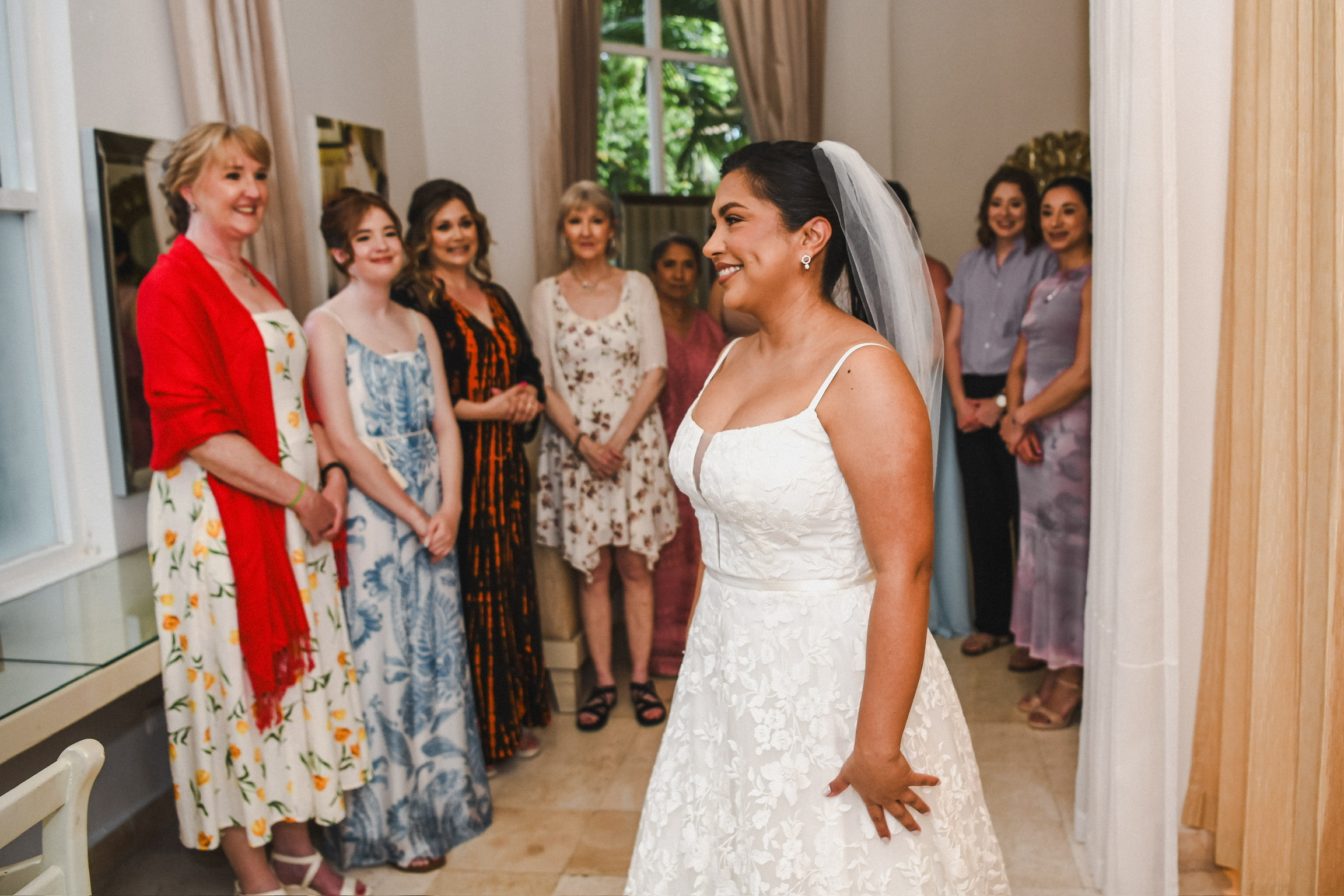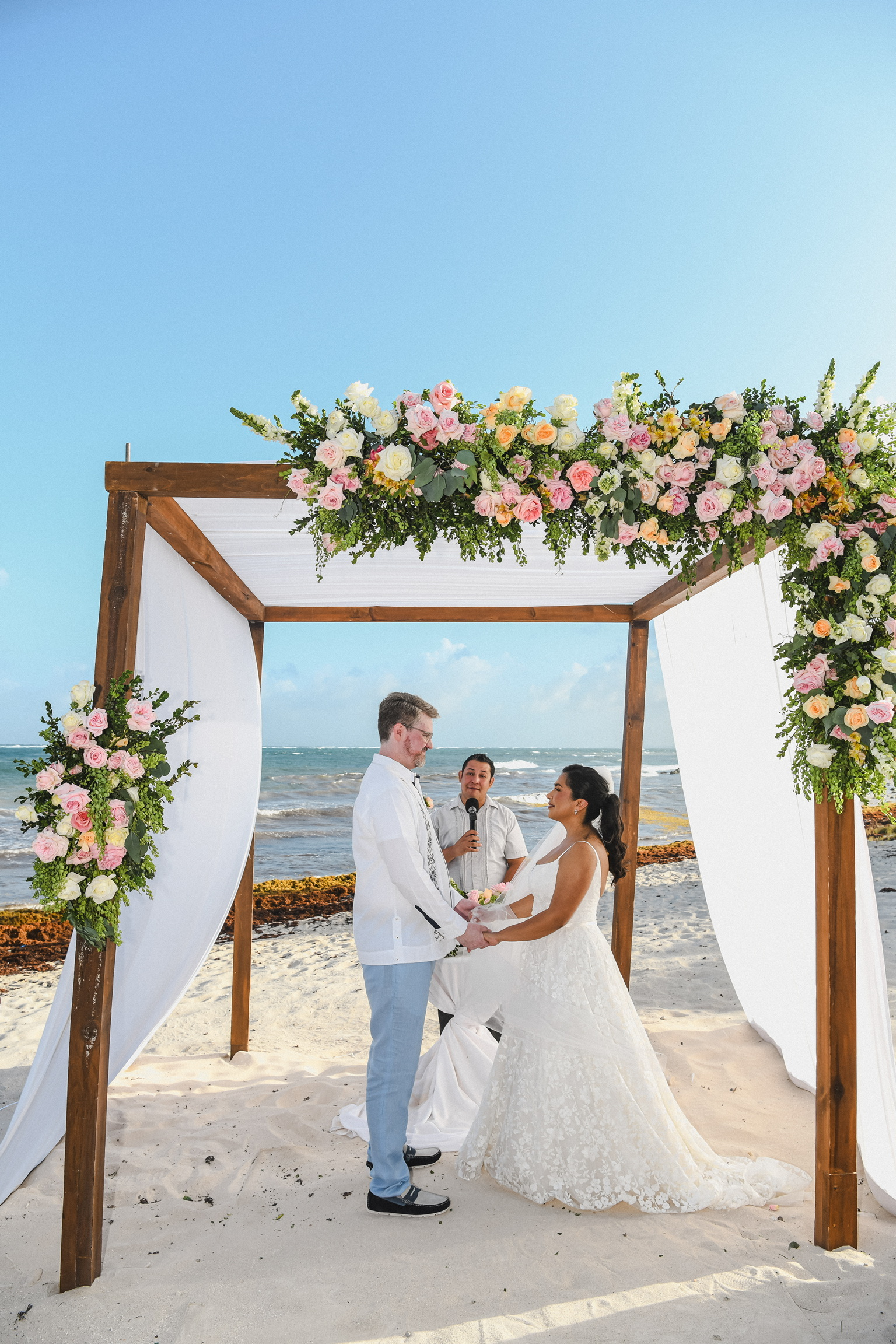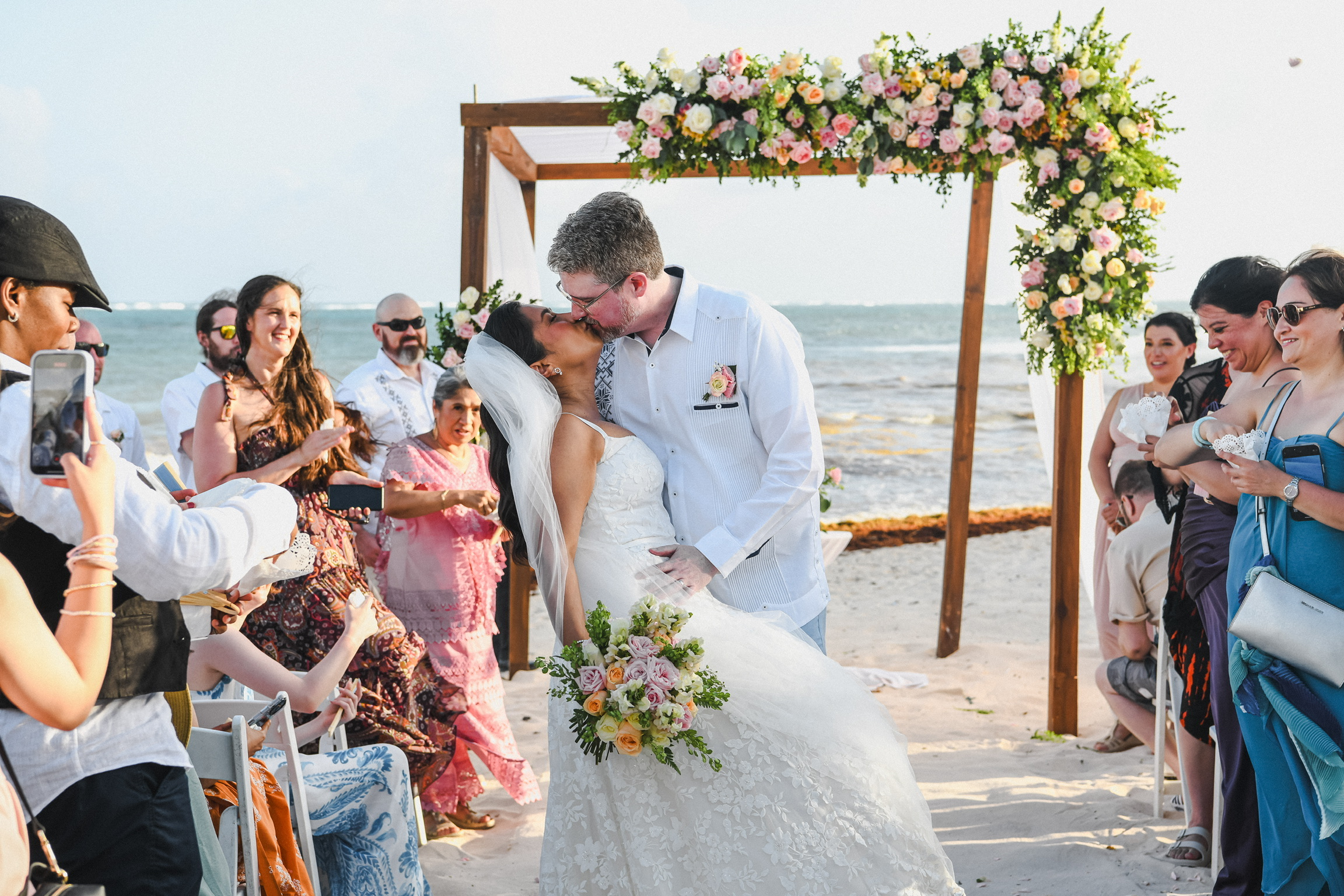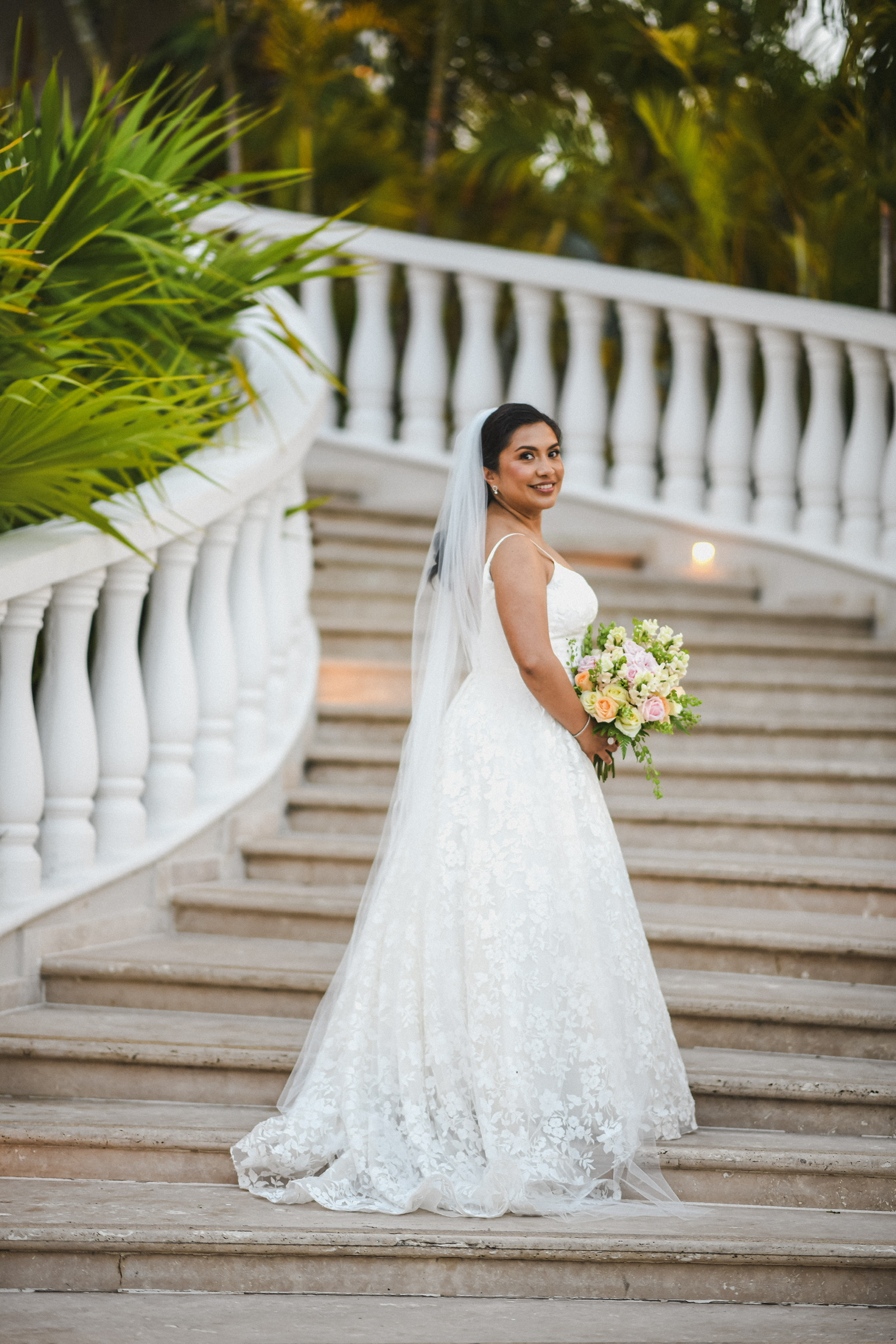 wedding dress: Lea-Ann Belter Harper gown from the flagship Toronto bridal shop | venue: Dreams Tulum | photo + video: PhotoDreamsTulum | makeup + hair: Sara Tamargo Makeup Artist