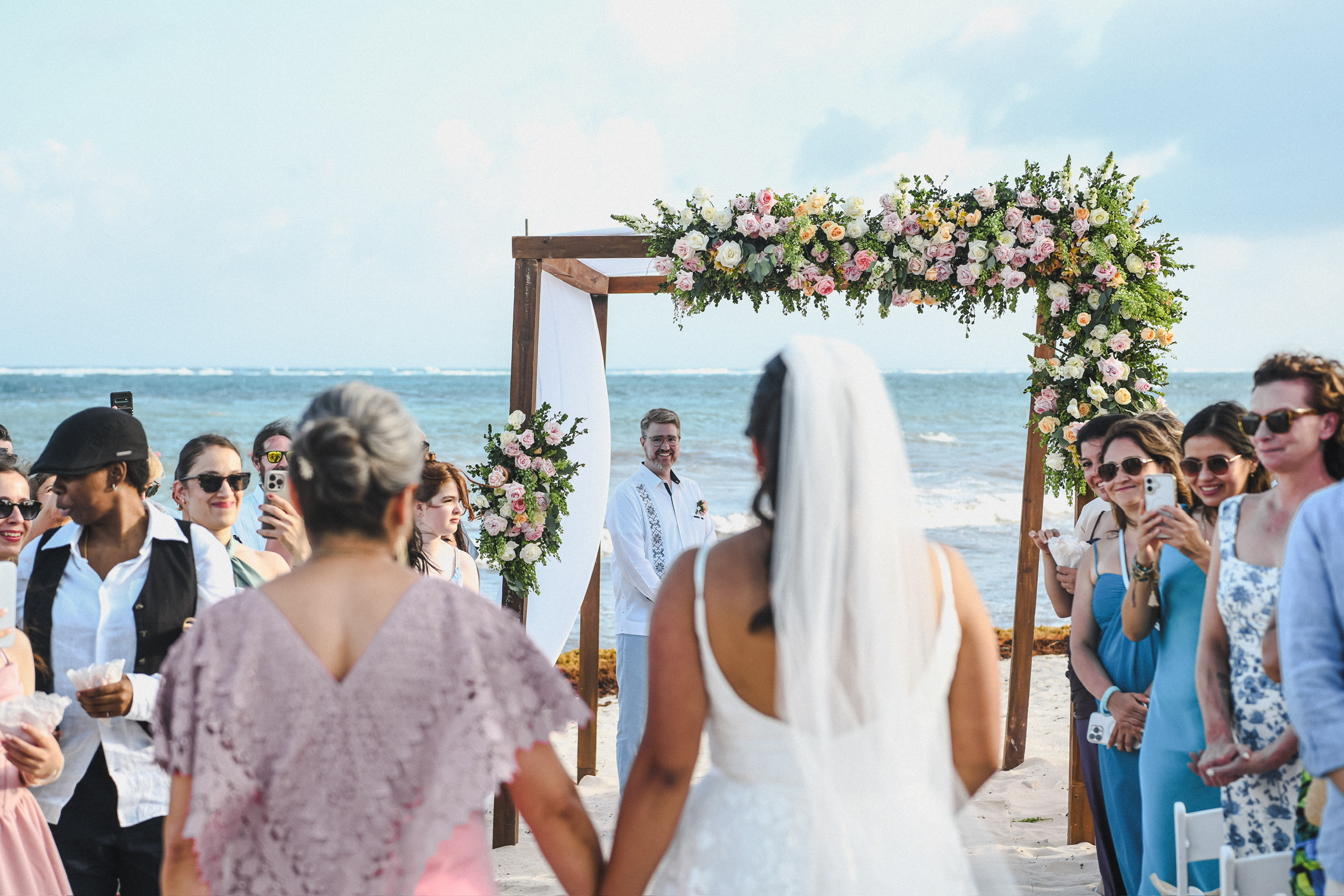 Diana grew up in Mexico City and Matt in Alberta, so they chose Tulum, Mexico, as the perfect place to start their new beginning. While every moment was special, their vows were particularly meaningful. “Matt said his in English and Spanish because he said that for him it was very important that my mom and family know how he feels for me. And they were particularly meaningful because in addition to the love and loyalty we promised to each other, we also vowed to be ‘patient with the others impatience’ it is an inside joke but summarizes that sometimes that’s what it is. Things are going to be perfect or great but we will be there supporting one another.”